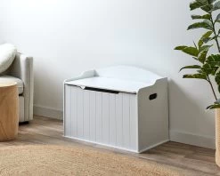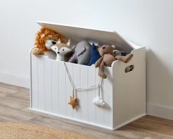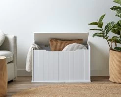 Tidy up in style with the Hamptons Storage Box. The perfect way to add sophisticated yet casual coastal style to your home, it’s well-constructed, with v-groove panelling and a bright, white colourway. With its convenient lid, this multipurpose storage box finds its place in various rooms. Use it as a whimsical toy box for the little ones’ bedroom, neatly tucking away their treasures. In the living room or bedroom, it becomes a stylish sanctuary for blankets, cushions, and linens. And let’s not forget the entryway or mudroom, where you can use it to effortlessly corral shoes, dog leads, and all those everyday essentials. Match back with more from the Hamptons range for distinct style throughout your home.