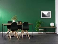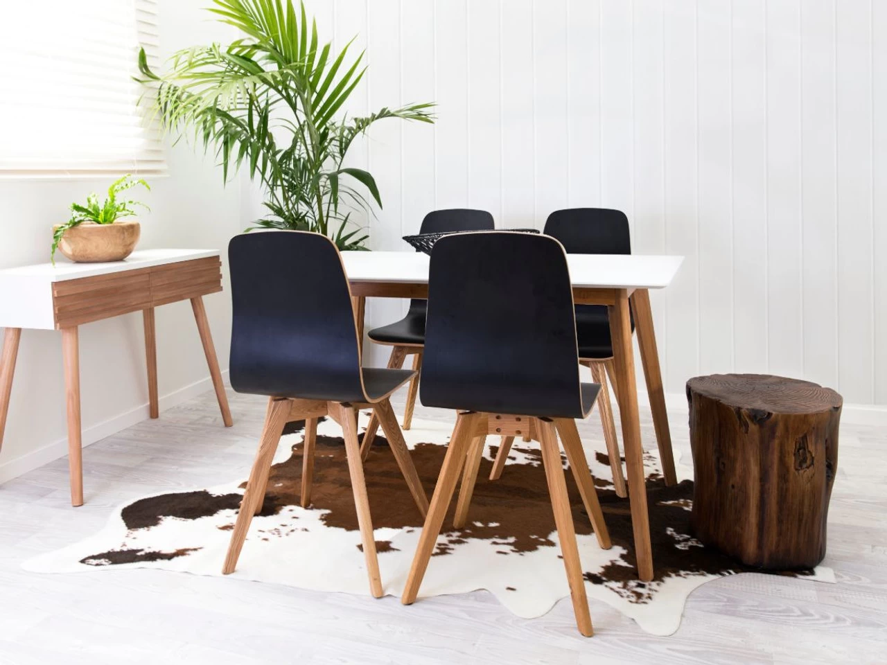 No matter the size of the room, the bold black chairs paired with natural wood legs, adds drama to any home office or dining space and is reminiscent of urban-industrial design.