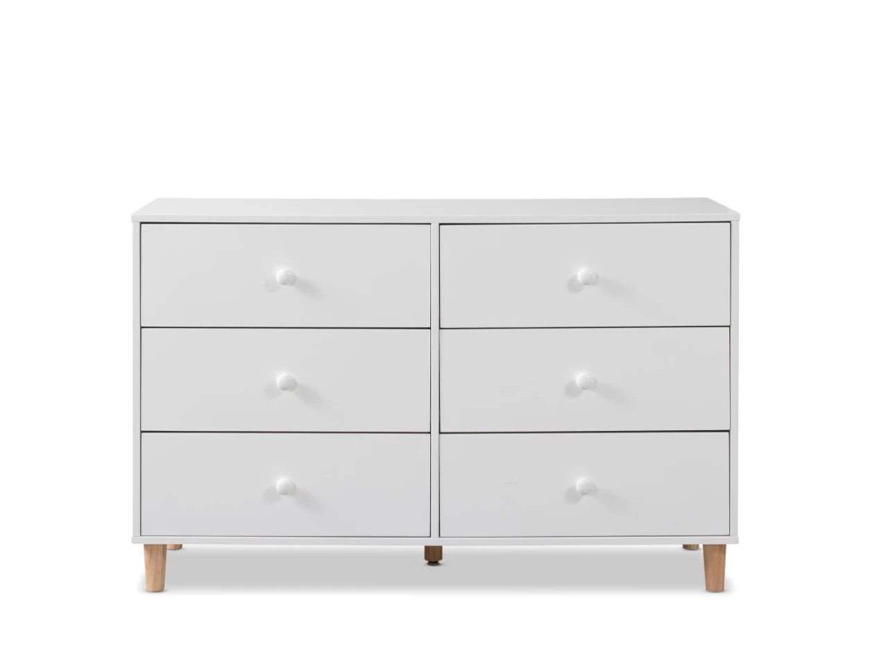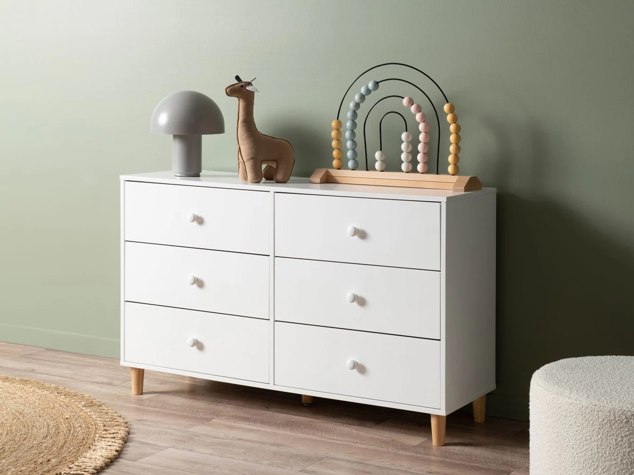 Create abundant storage space in a room with the Hobart Six Drawer. Bursting with useful storage, this large dresser has six spacious, sliding drawers and will easily suit a kid’s bedroom, nursery, or other bedroom in your home. A great way to add more drawer space, you’ll have plenty of room for your child’s shirts, shorts, socks, and other clothes and accessories. We love the bright, white finish highlighted with classic handles for a simple, modern style.