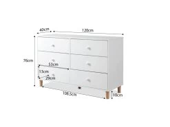 Each drawer has smooth metal rollers and a sturdy, round handle making them easy to open and close. With a supportive frame and base, this chest of drawers is durable bedroom furniture that is built to last. The spacious top surface is ideal for displaying toys, lamps, plants, and other décor.