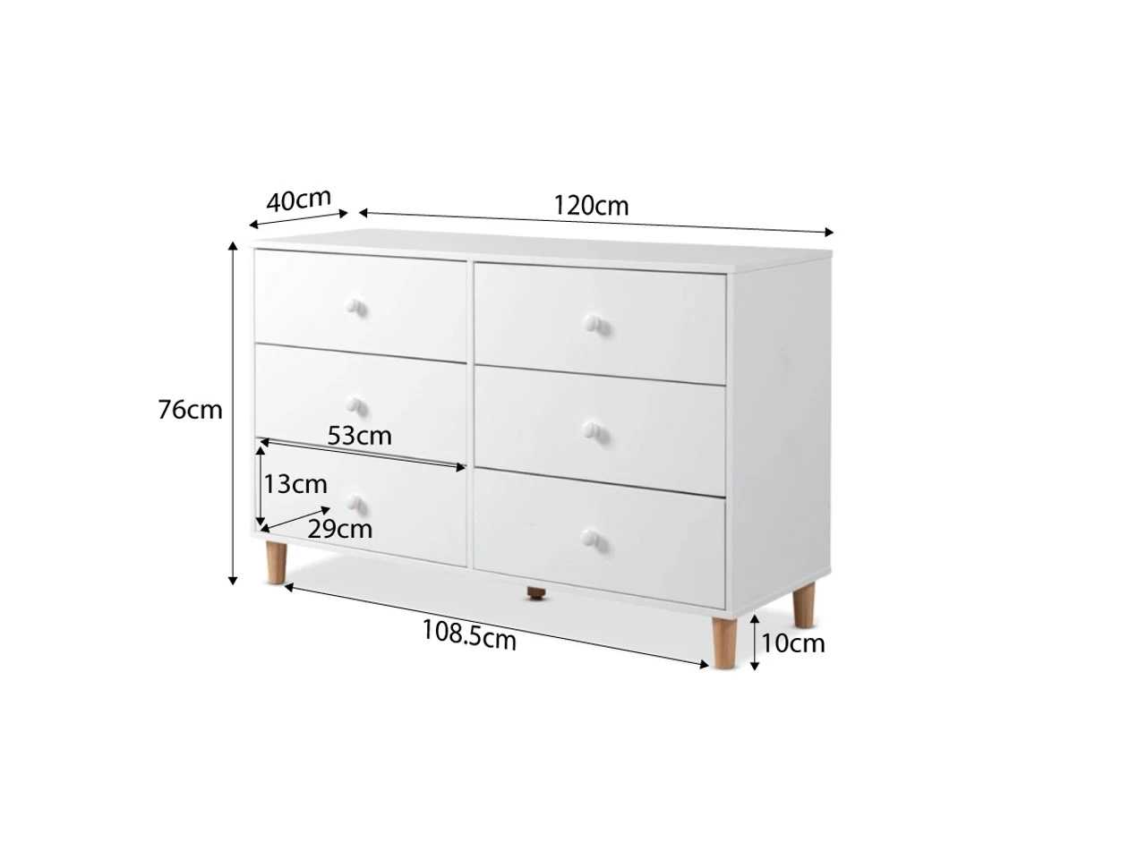 The Hobart Six Drawer instantly increases the useful, drawer space in a room. A great way to keep rooms tidy and clutter-free, this six-drawer dresser works wonderfully in a child’s bedroom or nursery. The three levels of drawers means you’ll have plently of drawers to store all your clothes and bedroom items away and out of sight.