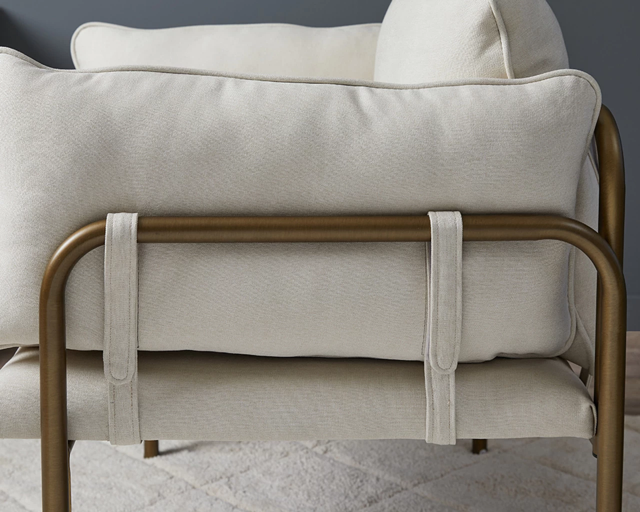 • Strong metal legs in a luxe bronze