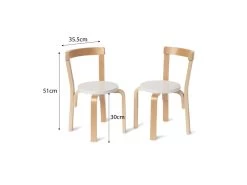 The Hudson Kids Chair – Set of 2 – White/Natural are a practical, wooden kids chair perfect for any boy or girl. Sold as set of 2, these chairs are made from plywood and have a solid, sturdy design. Suitable for children aged 2 years and older, they are the perfect height for littles ones to sit when eating, playing, or creating. Pairing a white seat with wooden legs and backrest, this set of wooden children’s chairs has a light and bright modern style to suit your home.