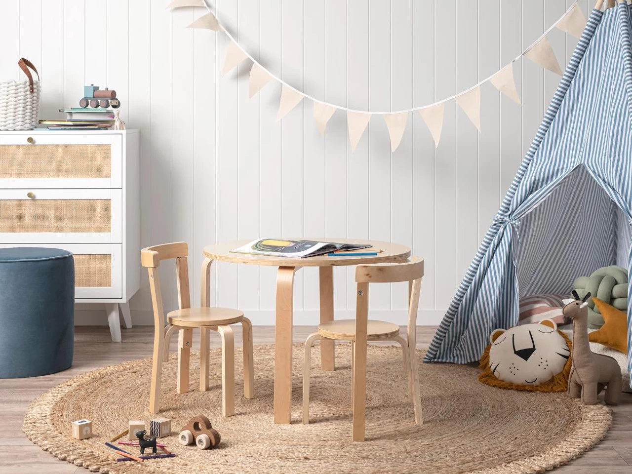 The Hudson Kids Round Table – Natural encourages independence for kids as they eat, play, and create at their very own table. Perfect for colouring, painting, cutting, reading, writing, or eating, this table is designed at a suitable height for kids to use with ease. Team with the matching Hudson Kids Chairs and Hudson Kids Stools to create a craft and mealtime table setting for your child.