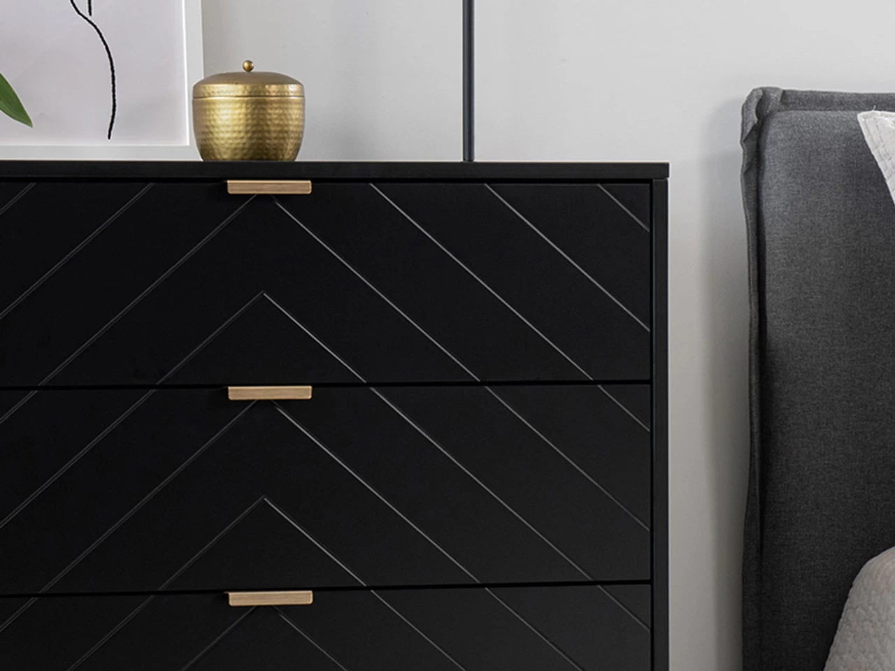 The Inca Four Drawer – Black has luxe style that will easily translate to your home. Sure to be a statement piece, this moody, black drawer unit features a subtle, engraved pattern on the drawer fronts – perfect for adding interest and texture to a space. Accented with gold handle details, you’ll adore the bold, luxe glamour of this mid-sized dresser.