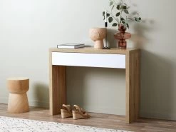 Refurbish the style of your home with our Jesse Console Table. Featuring a tall design and long body, this unit is ideal to place in your hallway or entryway. The sleek white draw provides enough storage space for keys, wallets, notebooks and pens, while the wooden surface can be styled with vases, bowls and photo frames.
