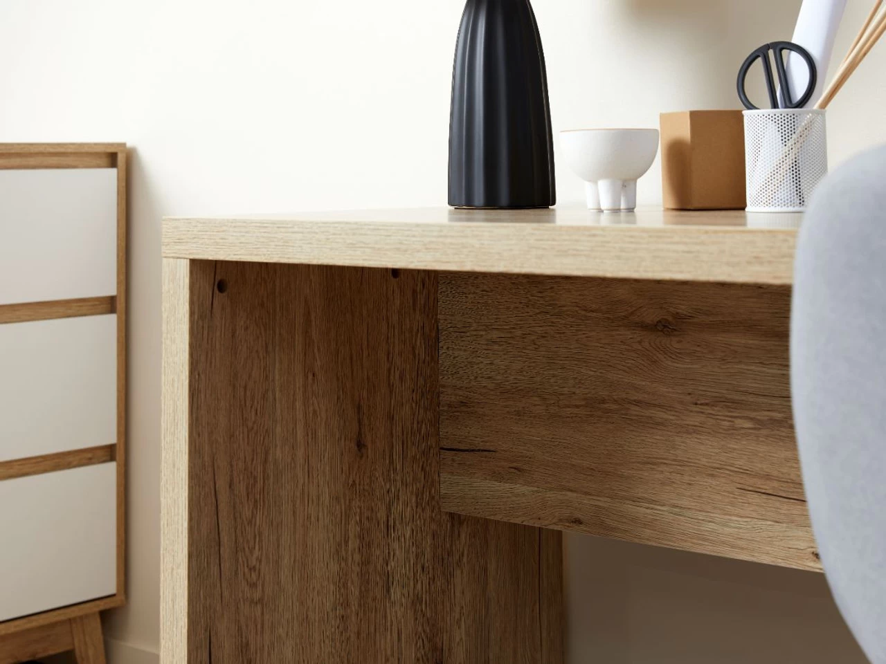 Working well in contemporary, coastal or Hampton’s style interiors, this desk has simple style you’ll love. The wood-look finish is great for adding warmth to any interior and features varying tones and grain patterns to mimic the look of solid wood. This clean, contemporary aesthetic will instantly elevate the impact of any home office or study space. For a consistent look, match with any storage or home furniture from the rest of the Jesse range. Also, explore our range of chairs to find the perfect desk chair. For contemporary office style, choose our Jesse Desk.