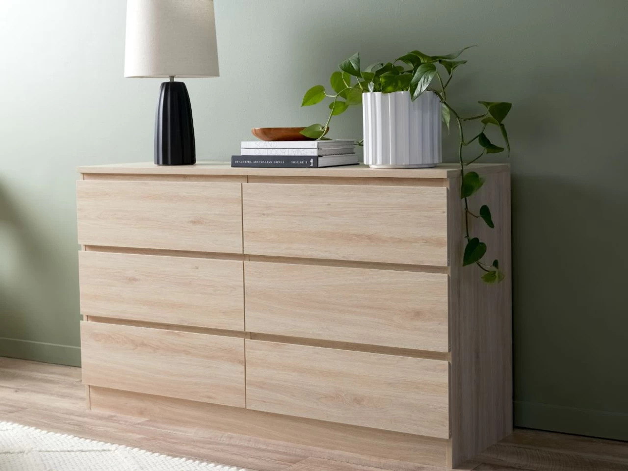 Maximise the storage capacity in any bedroom, nursery or playroom with the Jolt Six Drawer – Wide – Natural. The low-line design of this six drawer unit won’t take up a large portion of vertical space, so you’re able to add it into just about any room of your home. Utilise the wall space above to hang a set of floating shelves, frames, mirrors or photographs. Arrange a lamp, photos or your décor favourites on the top for a polished, decorative look or mount with baskets, and crates for extra storage.