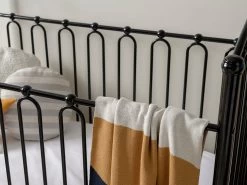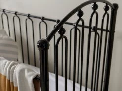The Josephine Cot – Black is a vintage metal cot with modern safety. Featuring tall, arched side panels, decoratively looped rails and metal beading, this metal cot creates a stunning contrast in a modern space and a traditional look and feel to a heritage home. Made from powder coated steel, this traditional, black cot is strong and durable, and has fixed sides.