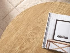 Add a stylish centrepiece to your living room with the Kalley Coffee Table. With a spacious, round tabletop, this coffee table offers plenty of opportunity for styling with décor. Ideal as a spot for entertaining or to rest the remotes, or a cuppa, this stunning coffee table creates a purposeful surface in any living room, media room or sitting area in your home. We love the angled shape of the legs that help ground the round tabletop and timber look finish for a look that is modern and elegant.