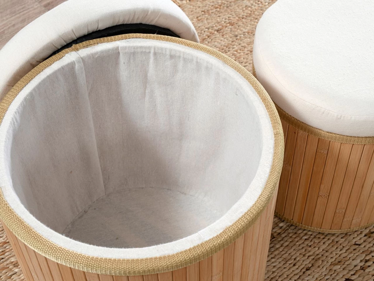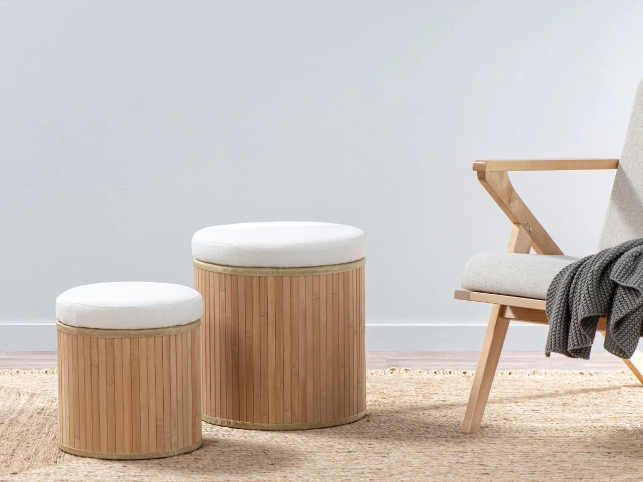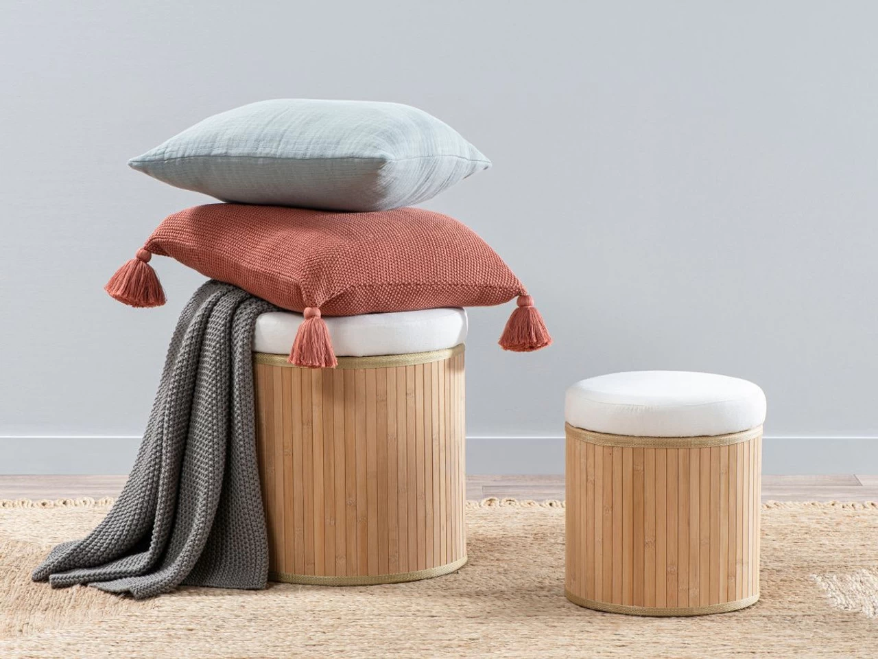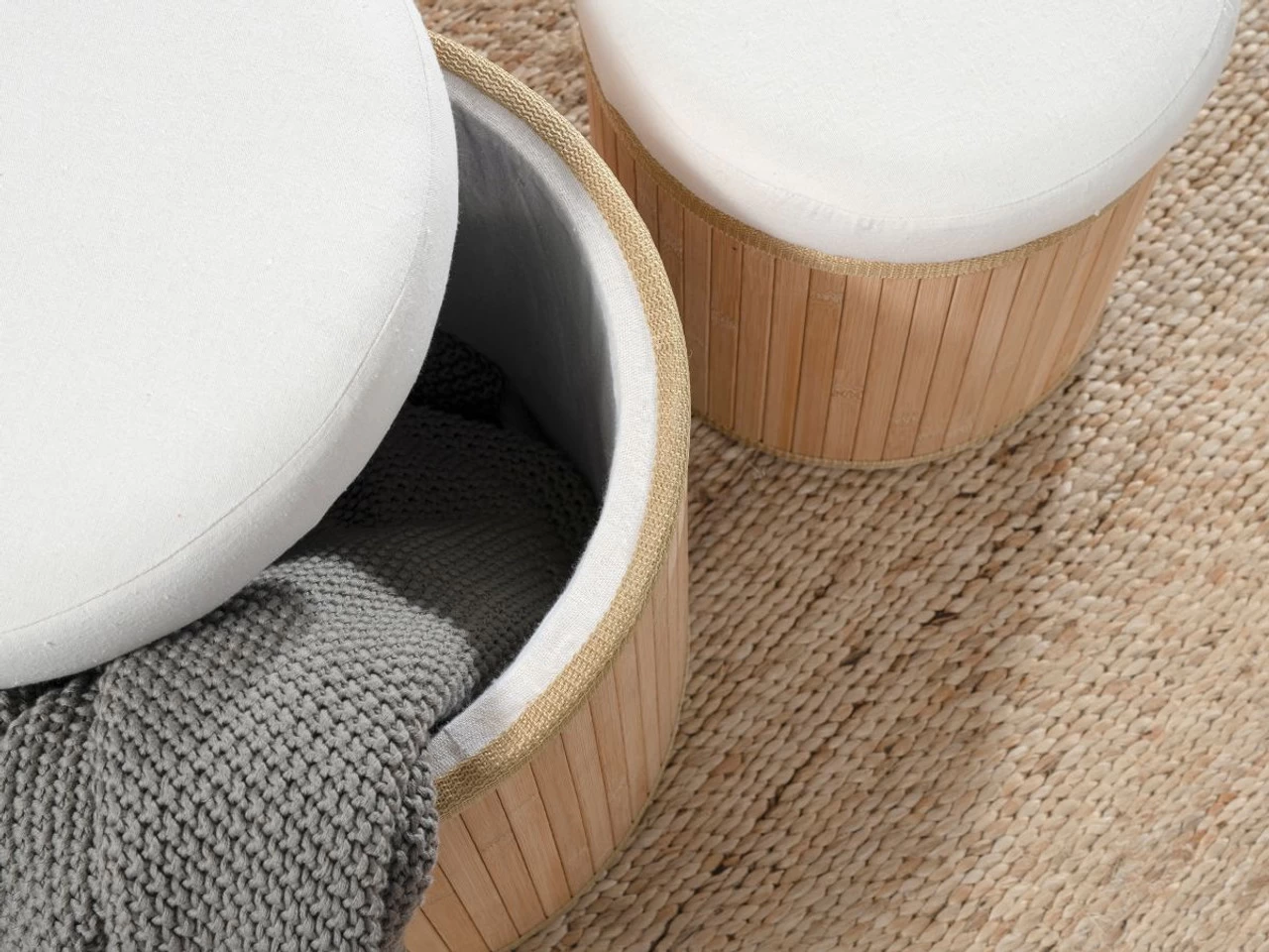 A super versatile piece of home furniture, these round bamboo ottomans not only offer cushy comfort for your feet, but they also feature hidden storage inside. The small ottoman can easily fit inside the larger ottoman, which means you can pack away this ottoman when not in use and save on valuable floor space. Alternatively, take advantage of the hidden storage and store blankets, pillows or more inside the ottoman – the perfect way to keep your room tidy.