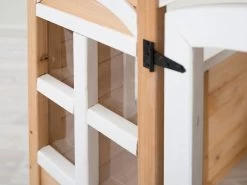 There are no limits to the places your child’s imagination can explore with our gorgeous Kids Cubby House. Made from fir wood and featuring two clear plastic windows on the front and three open windows, this cubby house creates a wonderful space for interactive and creative play. Suitable for children 3 years and above, a cubby house fosters independence as children imagine and play in a space of their very own. Gorgeously designed with a natural wood and white painted details, this cubby house will look stunning in any space, rumpus room, playroom or childcare centre/school classroom!