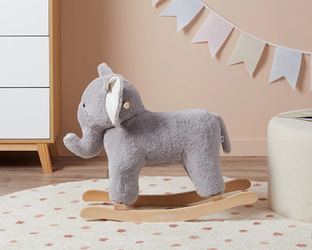 The Kids Elephant Rocker is a soft and huggable rocking toy for hours of rocking fun for kids. An adorable modern alternative to a traditional rocking horse, this elephant rocker features a soft plush body with big ears and trunk. This sweet design adds a whimsical element to a nursery or kid’s bedroom and is one of our favourite gifts for tiny tots.