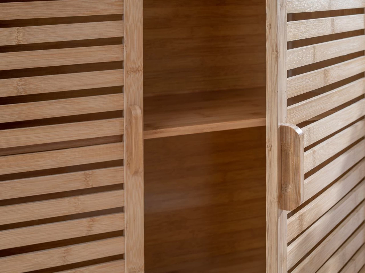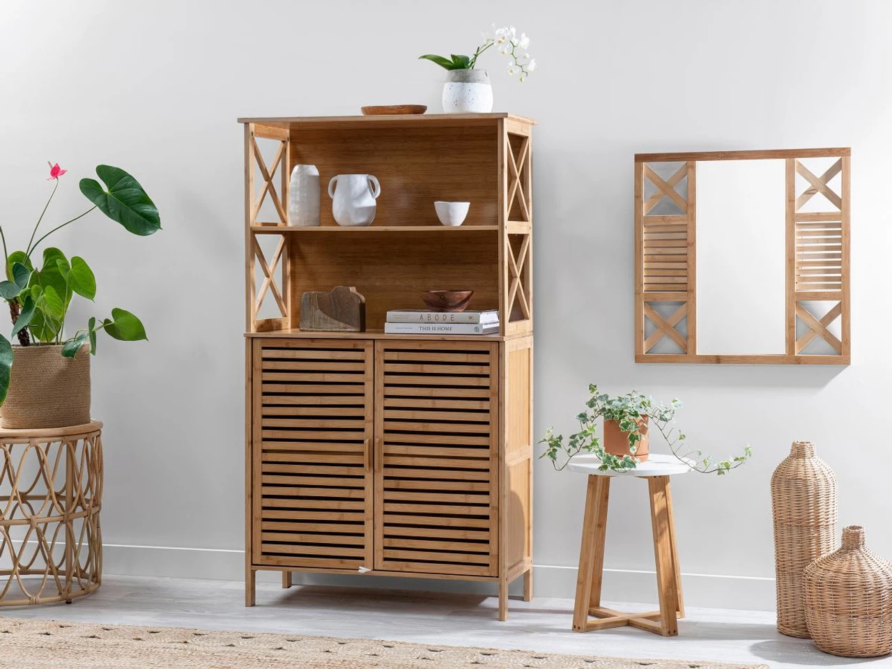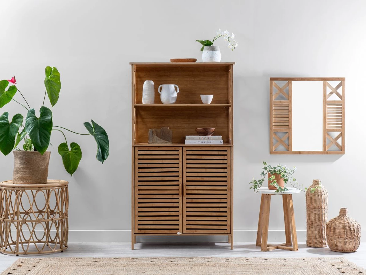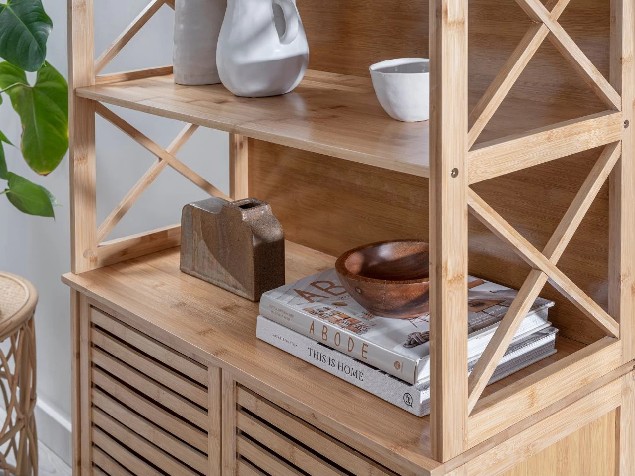 Keep everything in its place with the Kuranda Cabinet – Large. This chic bamboo shelving unit offers laid-back, rustic style with plenty of storage. Perfect for the dining room or living space, this buffet unit is essential home storage for those who love to entertain. Featuring wide open shelves and spacious closed cupboards, you can display plates, plants and décor, while keeping anything else tidy and out of sight. We love the decorative side panels that give your plants and décor an eye-catching spot in your home.