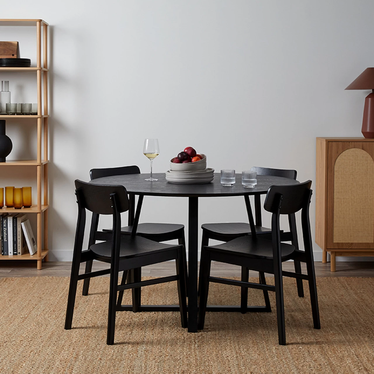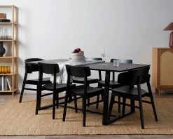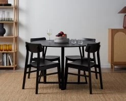 Create a stylish, modern dining room setting with the Leon Dining Chair Set of 2 – Black. The finish showcases natural grain patterns which show through the modern black colourway.