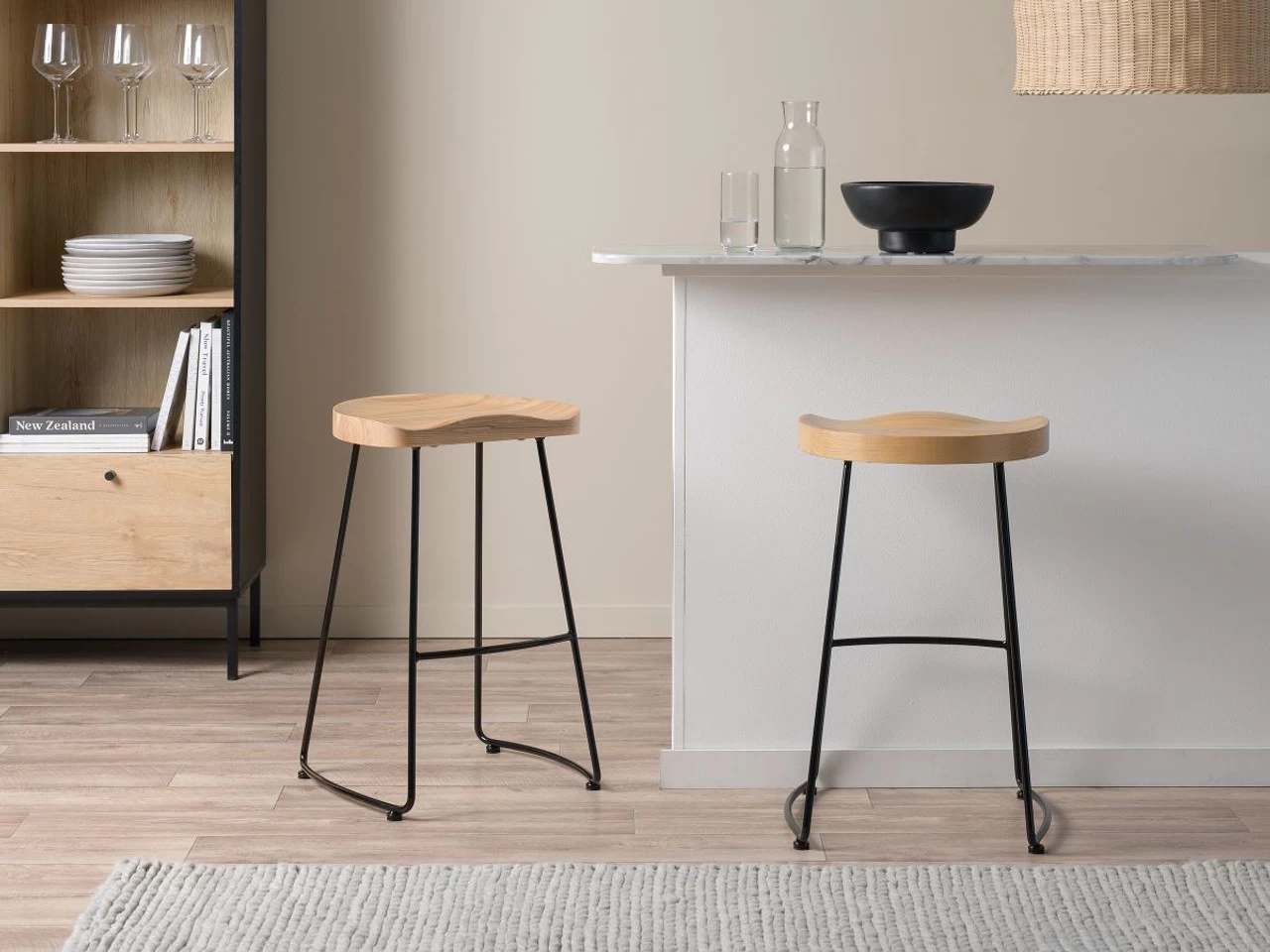 The blonde ash wood seat features a wonderfully smooth finish and showcases the lovely wood grains of the wood. This adds a warm, cosy element to your kitchen spaces and creates a gorgeous contrast with the modern, black legs. Sit comfortably for a meal and drink with the Levi Bar Stool – Black.