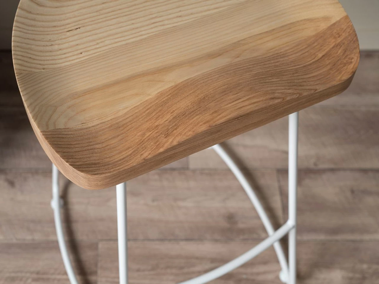 The blonde ash wood seat features a wonderfully smooth finish and showcases the lovely wood grains of the wood. This adds a warm, cosy element to your kitchen spaces and pairs beautifully with the bright, white legs. Sit comfortably for a meal and drink with the Levi Bar Stool – White.