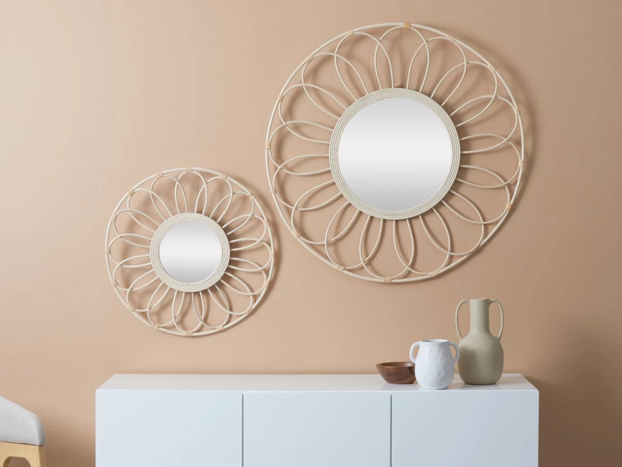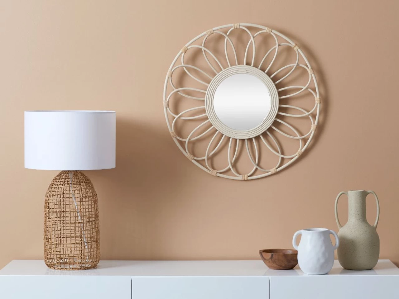 The circular design of this wall mirror is not only perfect to give yourself the once-over before leaving the house, but also reflects available light to make any room look bigger and brighter. Elevate the style within your home today with the stunning Lily Rattan Mirror.