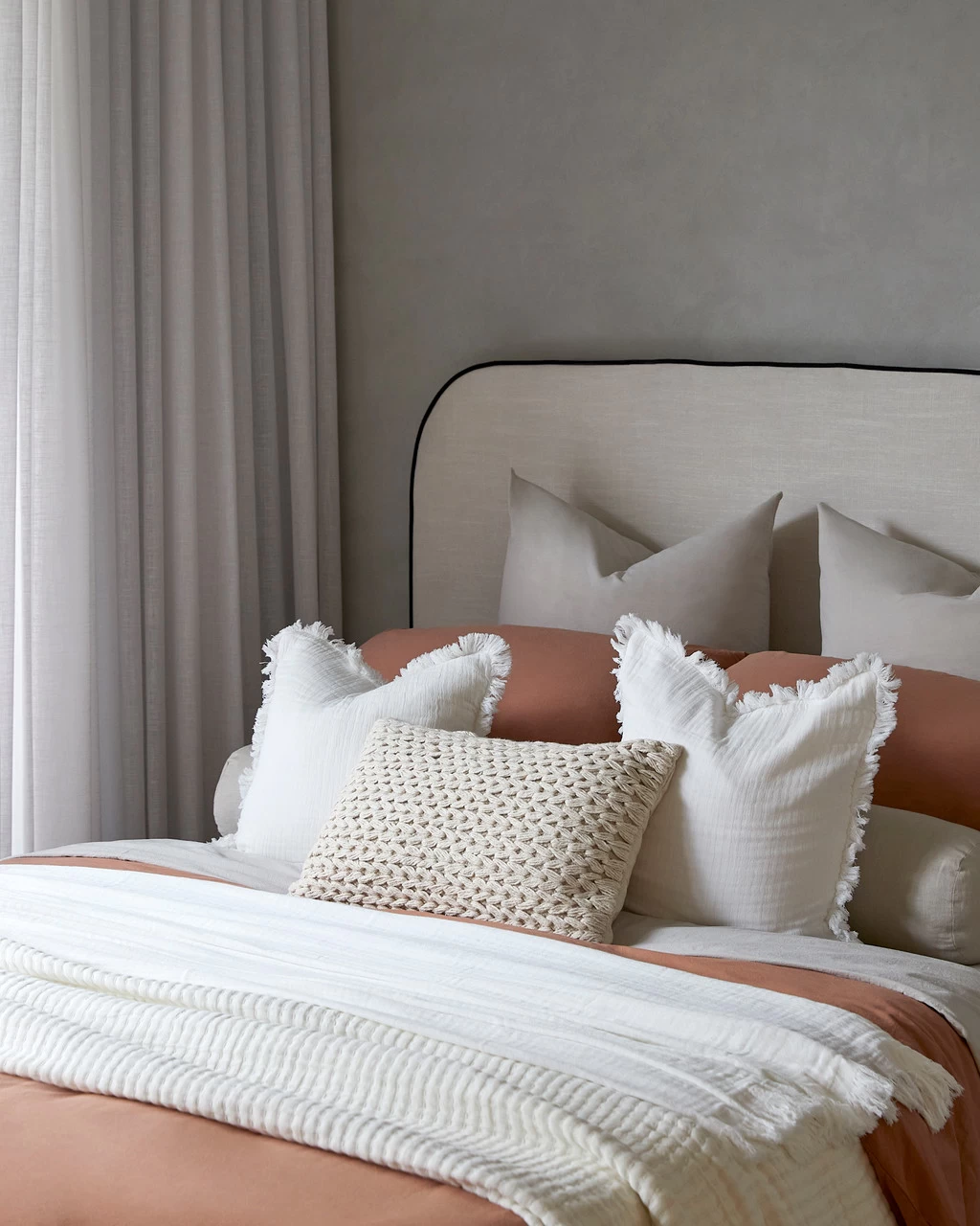 Give your bedroom designer style with the Linen Look Piped Queen Bedhead – Natural. The perfect way to finish an ensemble bed, it creates a statement look in a primary, guest or child’s bedroom. Comfortable to rest against, and gorgeous to look at, the texture, linen blend fabric is chic and on-trend and is trimmed in a classic, black piping. The natural colourway is wonderfully neutral and will pair well with a range of bedding and cushions. From earthy tones to paired back neutrals to vibrant patterns and colours, this bedhead is the perfect backdrop to your bed styling.