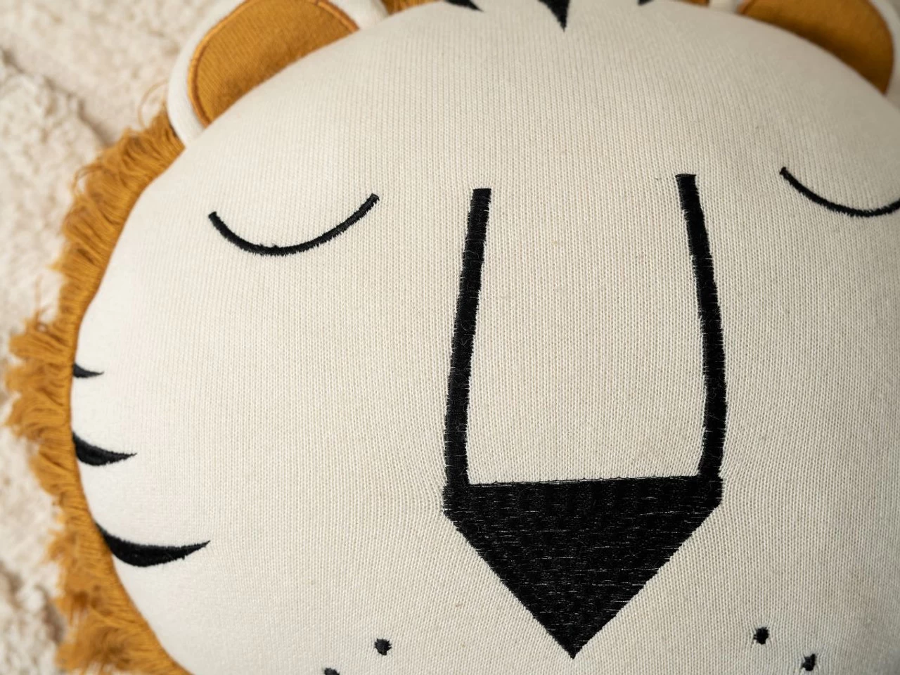 Go wild for our Lion Knitted Cushion! Crafted from soft cotton and featuring a friendly sleeping lion face, this cushion will make the perfect snuggling companion during nap time. The detailed knitted exterior will add a touch of texture to your child’s room, whilst the subtle orange mane will add a sense of jungle to any space. Simply style on its own or decorate with other Mocka Cushions for a bespoke and playful aesthetic.