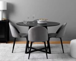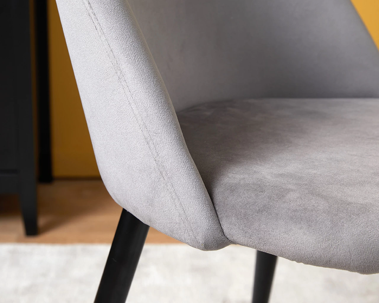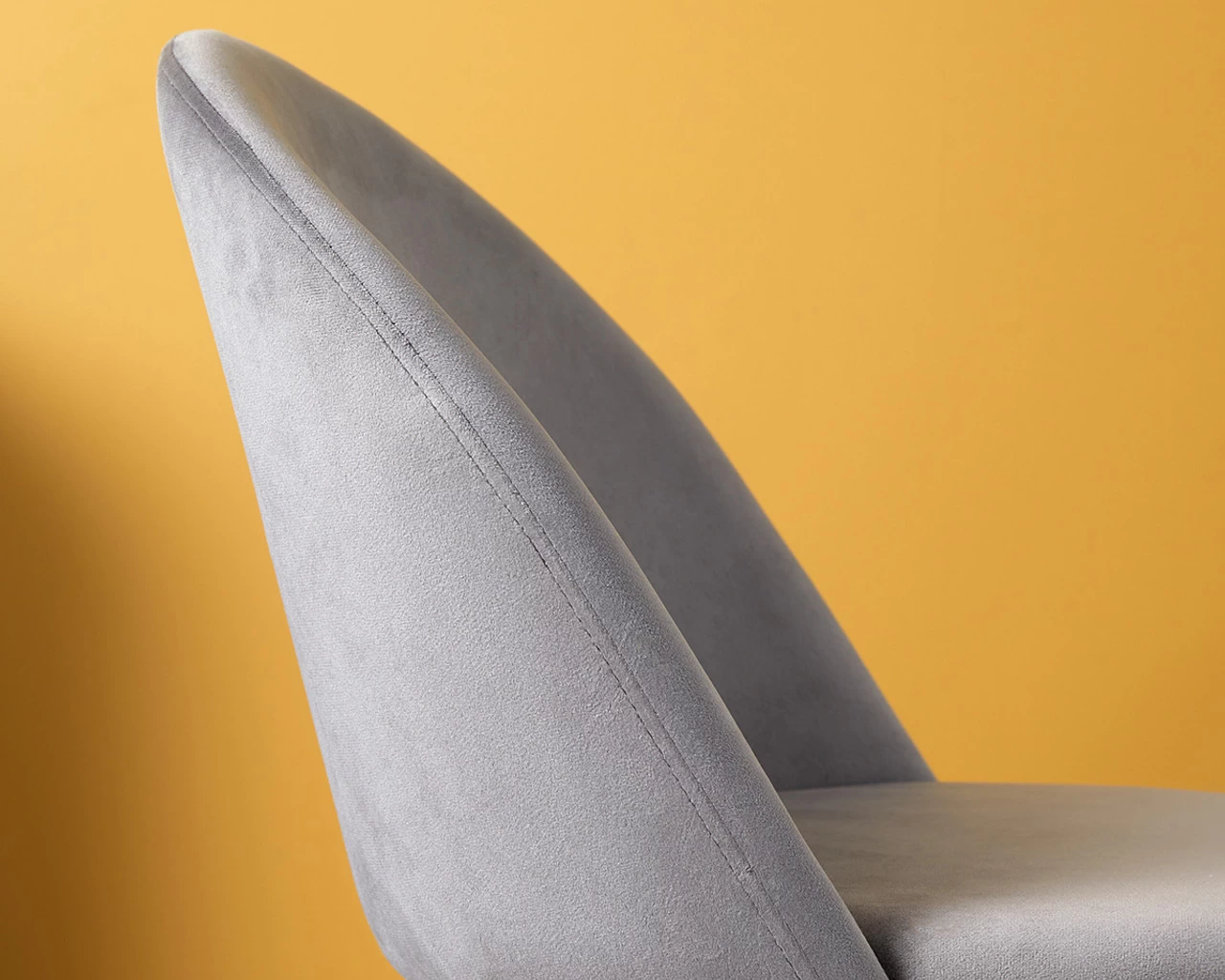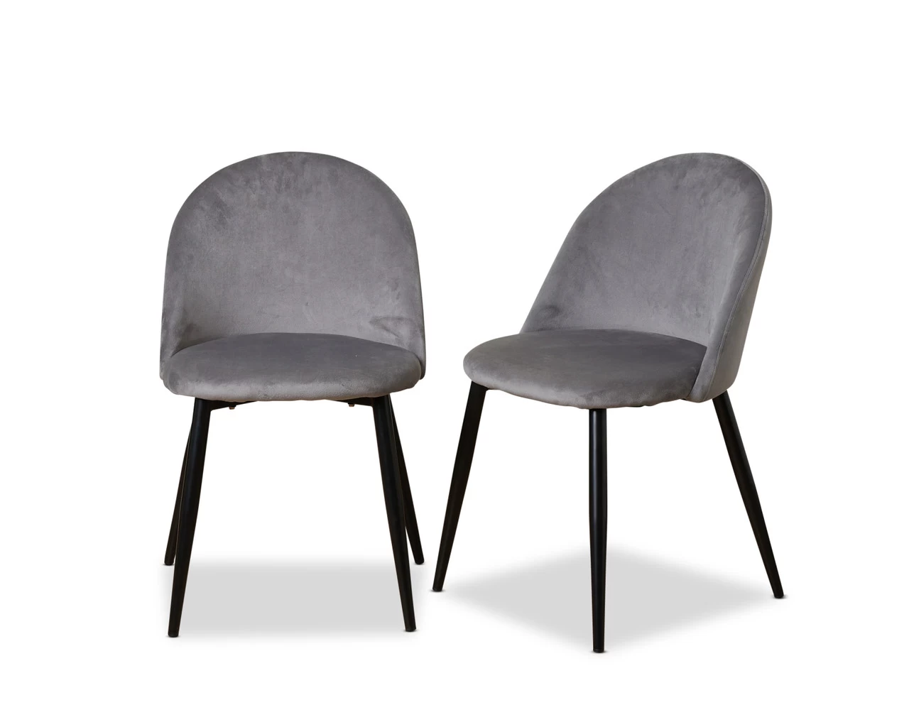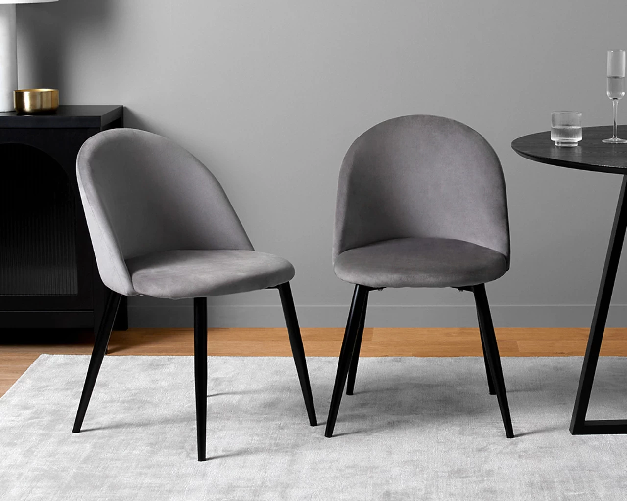 The Londyn Dining Chairs Set of 2 – Grey add modern luxury to your dining room. Wonderfully on-trend, the curved back is chic and super comfortable when sitting making them perfect for everyday dining and leisurely dinner parties. Upholstered with a rich velvet fabric that’s so soft to the touch, they shine in a neutral grey colourway. Embracing contemporary, luxe style, it’s a stunning combination with the black legs and a great way to add instant elegance to your dining room table. Sold as a set of 2, it’s easy to find a seat for everyone or to use them as fabulous accent chairs in your living room, bedroom, or office.