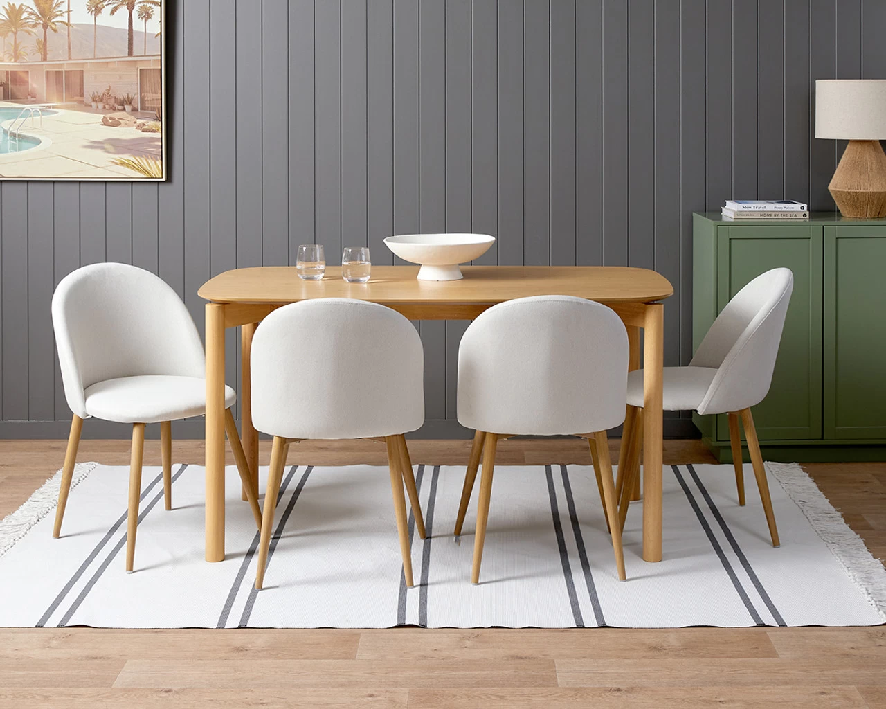 Create a serene dining space with the Londyn Dining Chairs Set of 2 – Natural. Wonderfully on-trend, the curved back is chic and super comfortable when sitting making them perfect for everyday dining and leisurely dinner parties. Upholstered with a natural fabric and colourway and paired with wood-look legs, they’re the perfect neutral dining chair for elegant, timeless style. Sold as a set of 2, it’s easy to find a seat for everyone at the table. The versatile shape and style also mean these chairs could work as fabulous accent chairs in your living room, bedroom, or office.