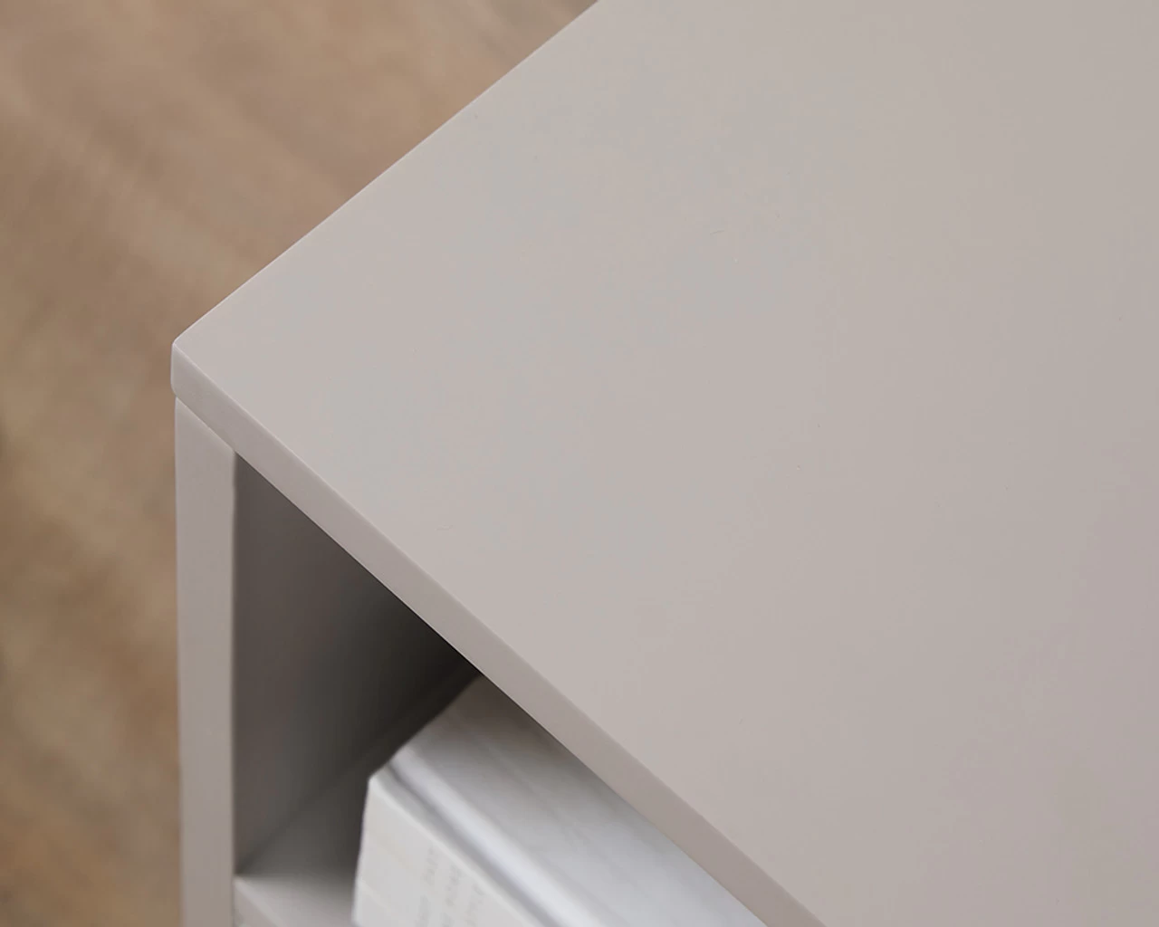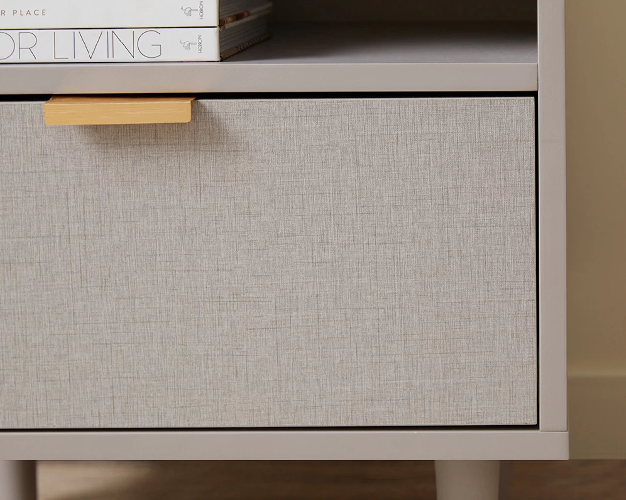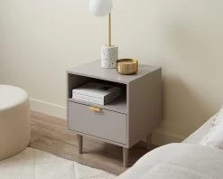 Bring chic style to your bedroom with the Mabel Bedside Table. It’s modern outline, earthy mushroom colourway and textured look drawer adds distinct design to any bedroom in your home. And the best bit? Choose between either a silver or brushed gold handle to customise the piece to your own style. It’s not only super stylish but also functional with a sliding drawer and pocket shelf. Providing handy storage by your bedside, the pocket shelf is ideal for neatly storing your current read or styling décor, while the sliding drawer will keep your bedroom tidy and clutter-free.