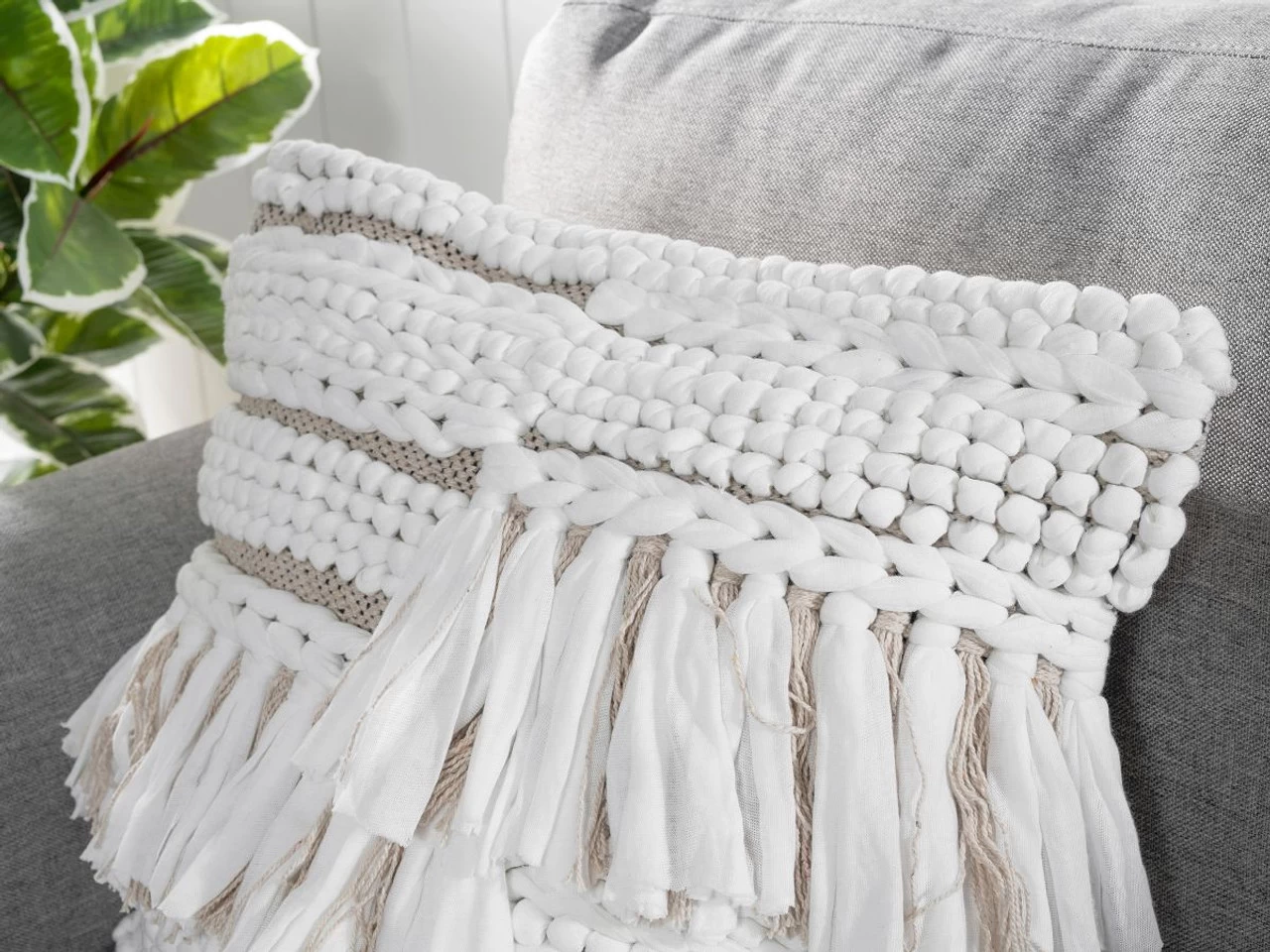 You’re sure to love the Madison Cushion. With a distinct beachy, boho vibe, this cushion cover has all your lounging and style needs covered. The tassels and pom stitching provide a soft, textured feel adding the right amount of comfort to a space. With a neutral colour palate of beige and white you can style this cushion anywhere into your home. The standard 45cm x 45cm sizing makes this beauty the perfect size to adorn a couch, armchair or master bed.