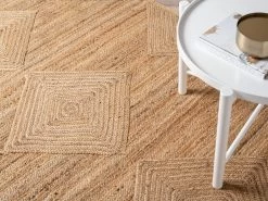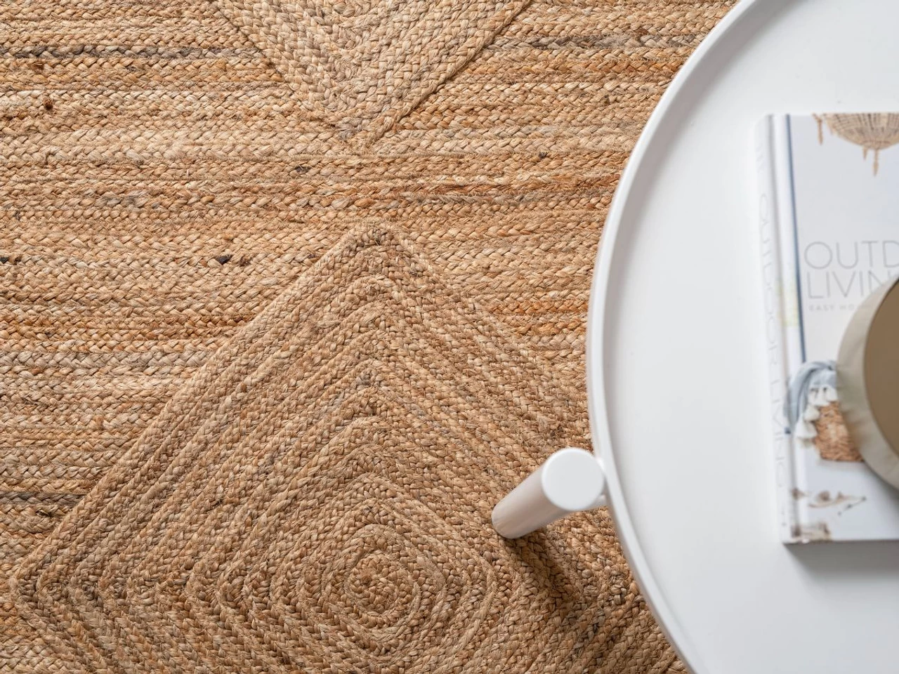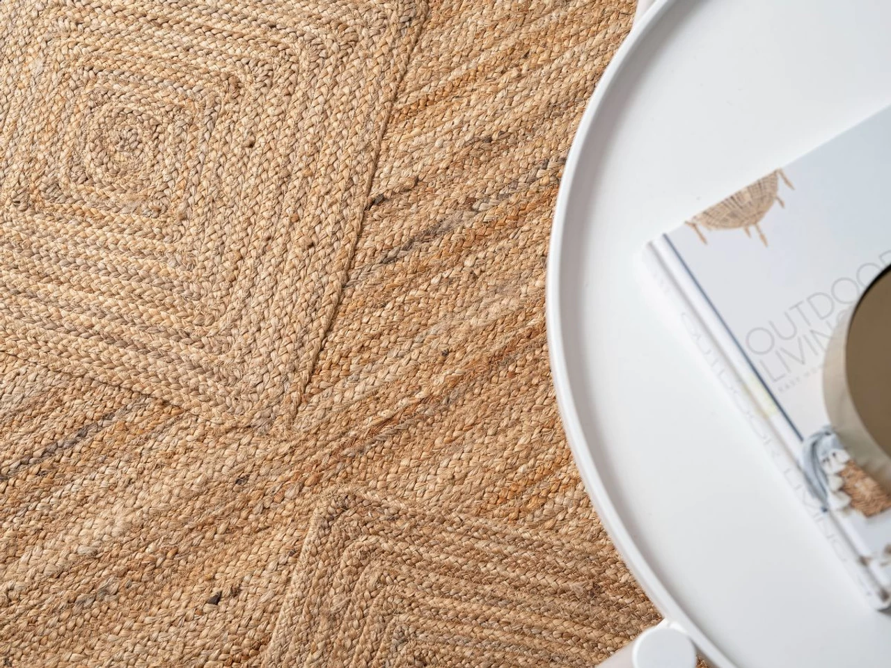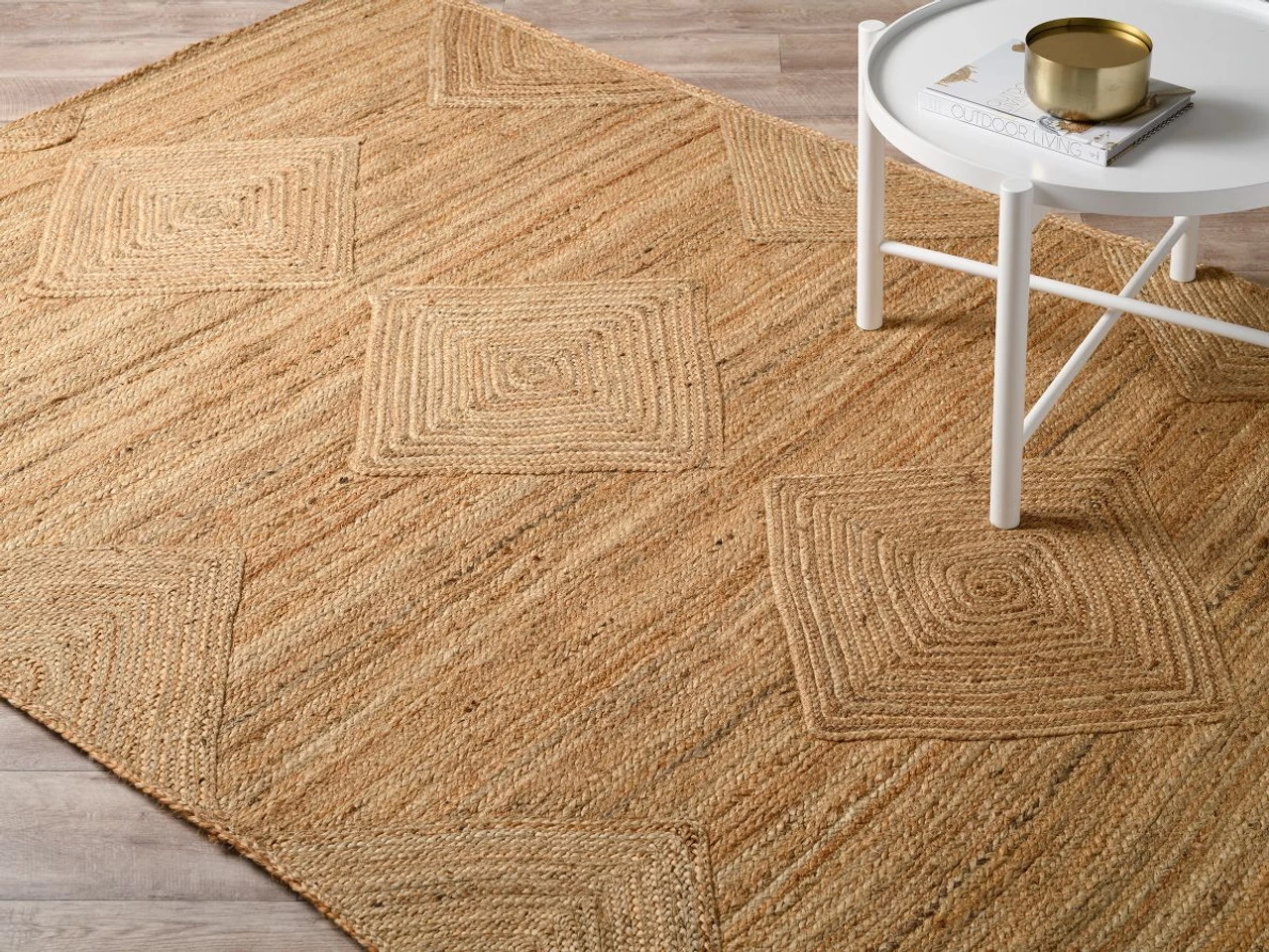 The Mia Diamond Jute Rug Large – Natural is a warm and textured area floor rug to add to your bedroom, dining room and other living areas. Woven from 100% natural jute, this durable rug features a braided diamond pattern for stunning chic style and is a great way to add subtle pattern and texture into a room. With a natural jute colour, this pile showcases the raw shades and colourings of the jute fibres for a warm rug you’ll love in any room.