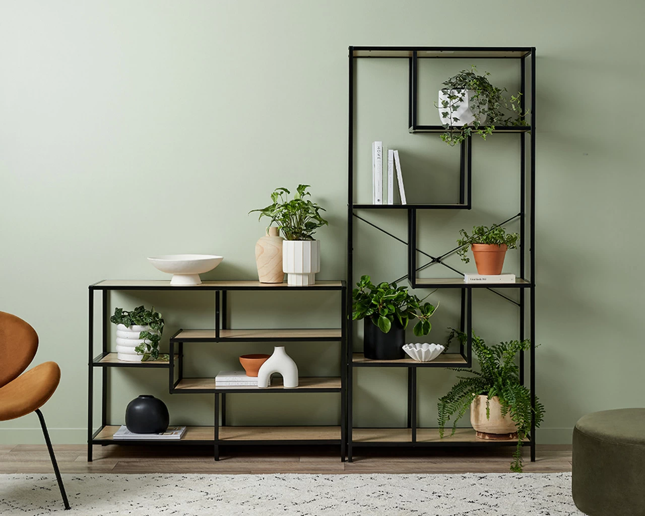 With 6 difference shelf ‘compartments’, experiment with different size plants, to show off their foliage to guests. You’ll fall in love with how your favourite pot plant and greenery pops among the shelves. Besides plants, you can use this stand to display pictures, knickknacks, and other treasures. Or use a bookshelf to add some books! Add a candle, print and photos to add dimension. The possibilities are endless when it comes to styling this beauty.