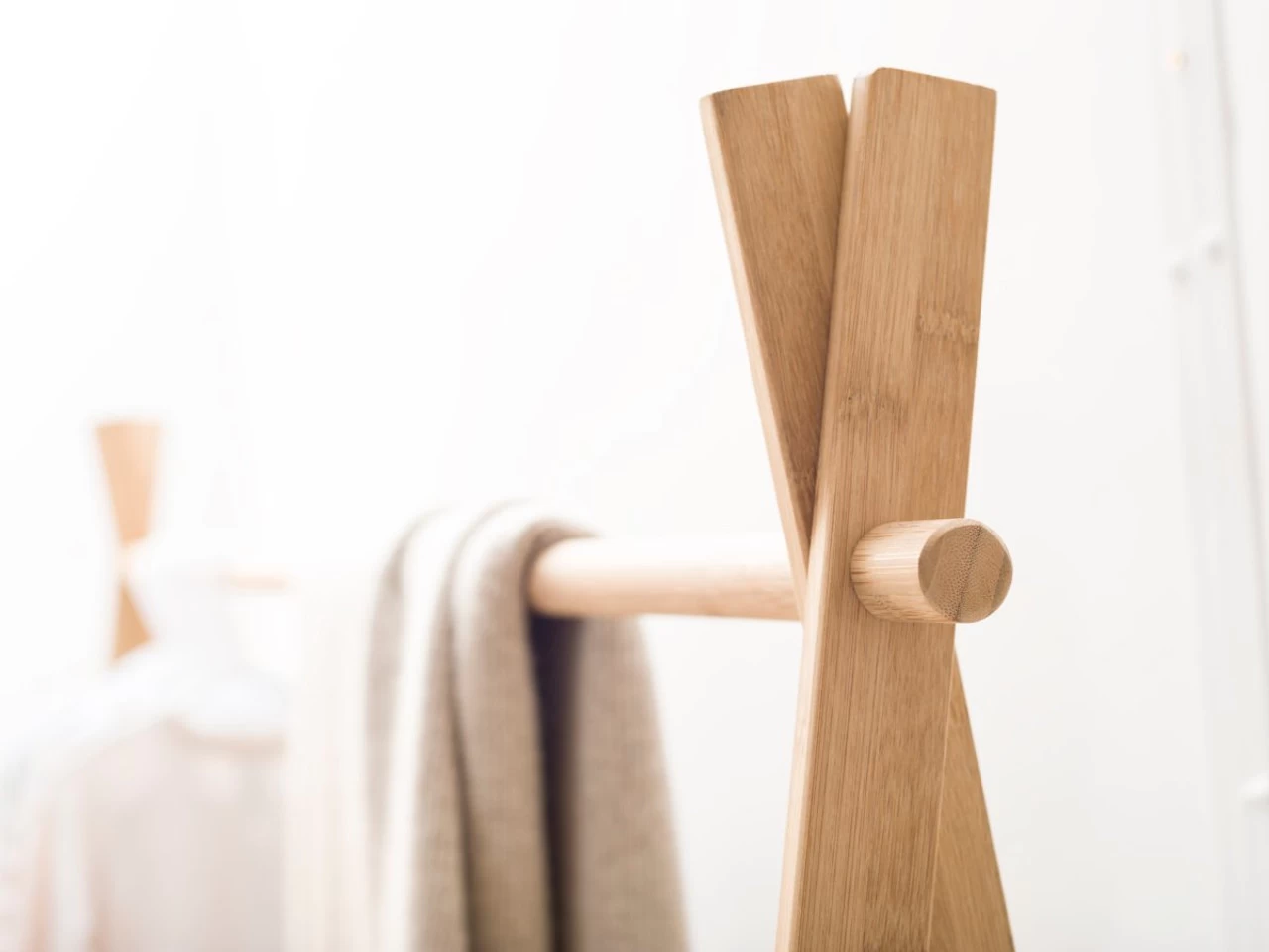 Made from smooth bamboo, the open A-frame design can be used to hang up clothes in the bedroom or dress up’s in the playroom.