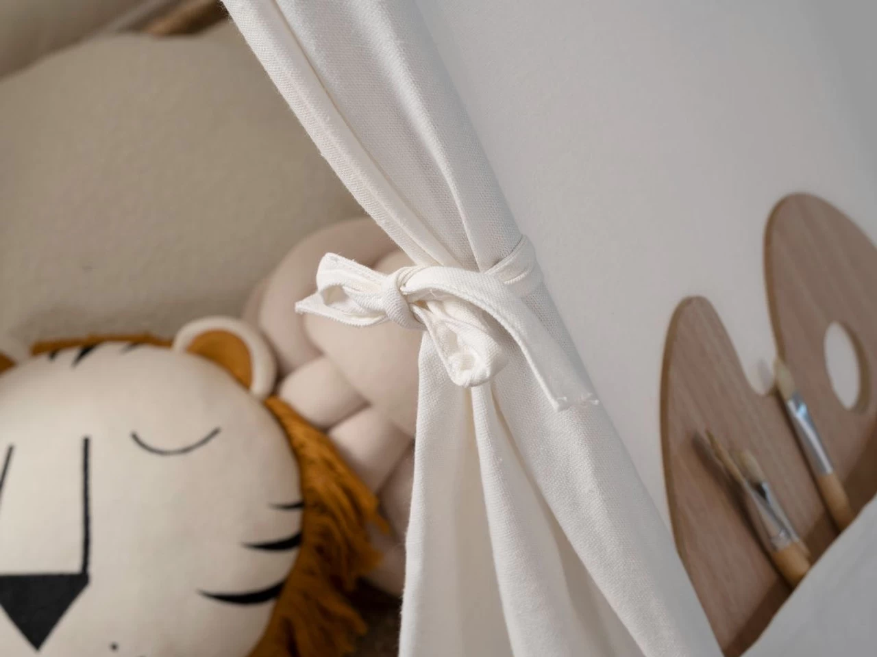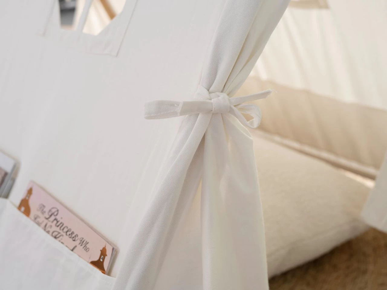 With tie-back door flaps and cute windows, kids can enjoy easy access and parents can keep an eye on them from across a room. With simple ties, you can also roll the flaps closed and create a cosy space within perfect for reading, watching movies on a device or quiet play between friends and siblings. The sides of this teepee featuring three handy pockets where books, toys, colouring books, and more can be kept ready for dedicated play.