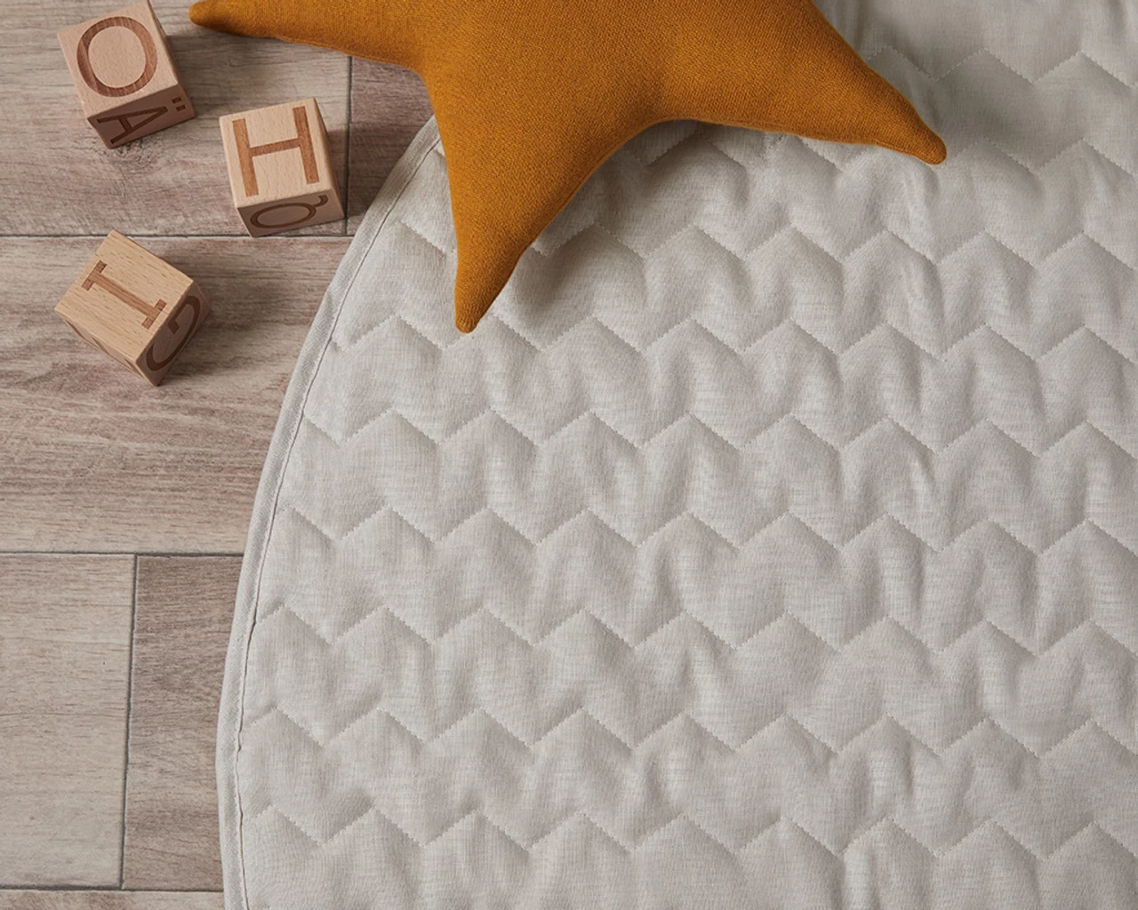 The Mocka Linen Play Mat – Natural is a stylish play mat for tummy time and play. Made from a luxurious linen that’s soft on your baby’s skin, this play mat has a cosy quilted design for added comfort. The perfect space for your baby to have tummy time or play, this mat has its own matching carry bag so you can take it with you on the go. The generous 120cm size provides more than enough space for playing with blocks and other interactive toys. This gorgeous design will add a relaxed and elegant look to your home and nursery.