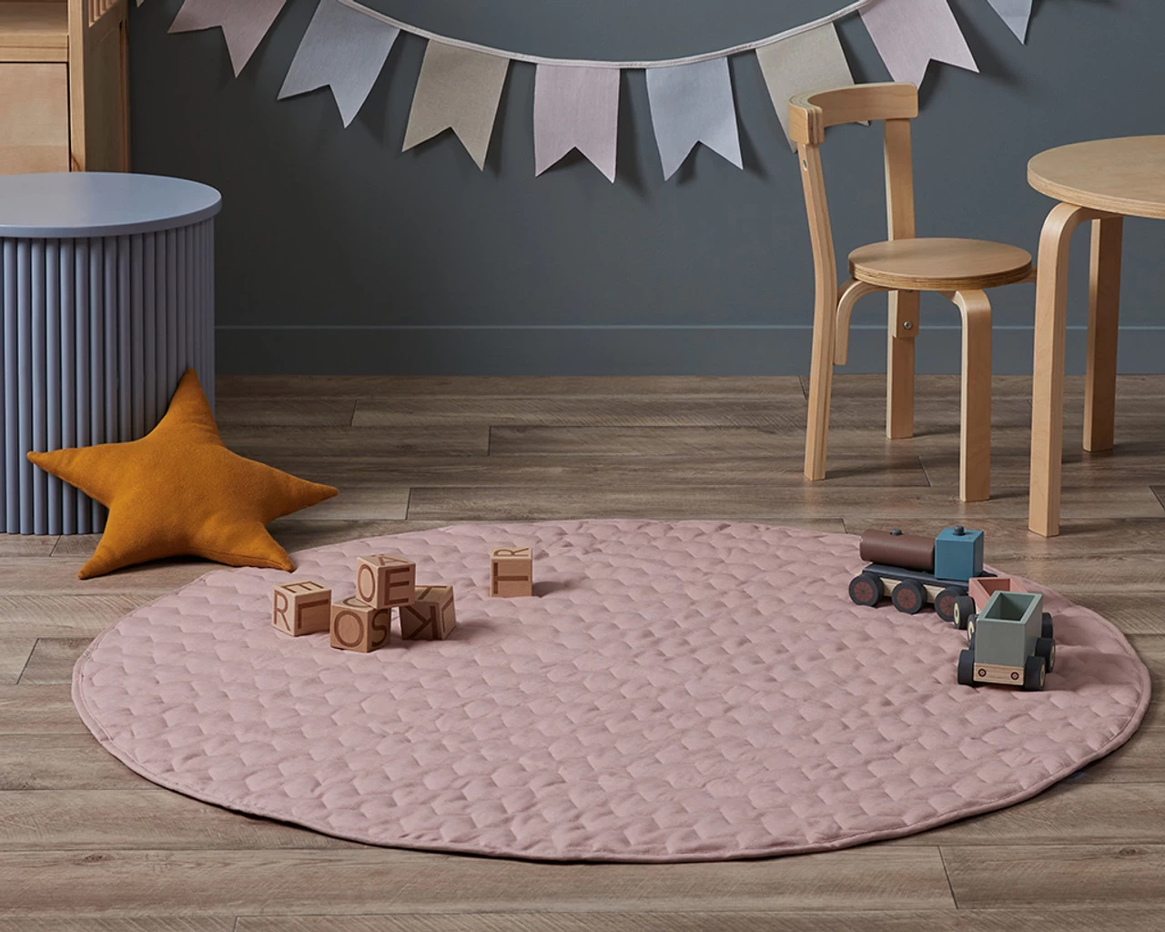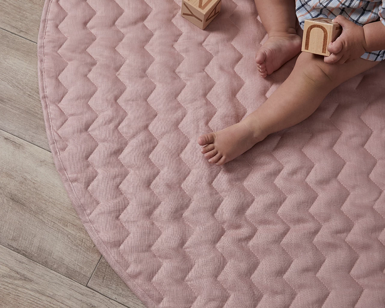 The Mocka Linen Play Mat – Soft Pink is a luxurious linen play rug for babies. With a cosy quilted design, it’s the perfect play mat for tummy time and play throughout the day. It’s comfortable, soft on your baby’s skin and comes in a gorgeous soft pink colour. And with its own matching carry bag you can easily take it with you on the go. The generous 120cm size provides more than enough space for playing with blocks and other interactive toys and is a great size for the living room and nursery.