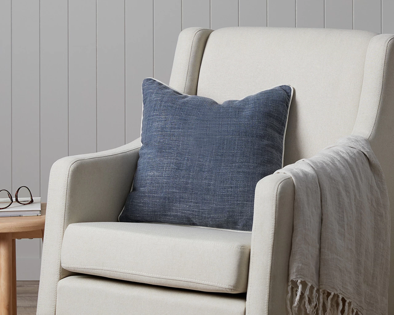 The Mocka Piped Cushion โ Navy/White transforms your sofa, armchair or bed into an effortlessly elegant space. Its rich denim navy tone complements your home and features a white piped trim for a super classic look. It’s a great way to achieve timeless style, whether your home is traditional, Hamptonโs, modern or somewhere in between. Made from a linen blend, the natural weave has a soft feel and a wonderfully relaxed look. It comes with a plush insert for cushy, sink in comfort. And the cover is removable, and colour fast tested, so it’s easy to keep it looking fresh.