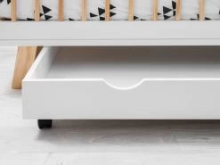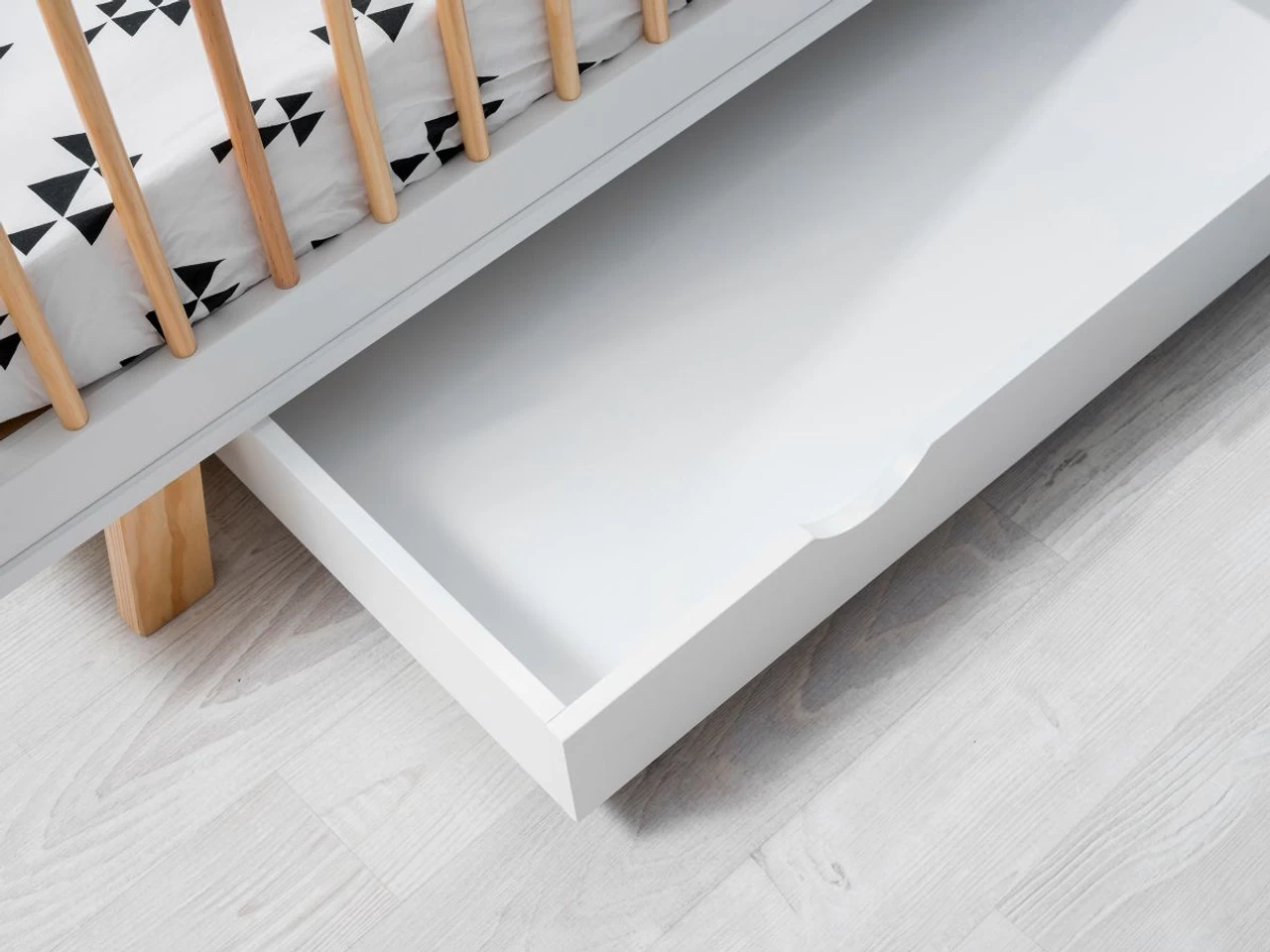 Featuring a simple mate white colour it will easily blend in with your cot of choice. Two curved hand holds make it comfortable to reach and slide the draw out. The rotating castor wheels provide flexible movement to manoeuvre the tidy box whenever you need – from chest of drawers to under the cot. A smart solution for small spaces, enjoy a tidy nursery with the Under Cot Storage.