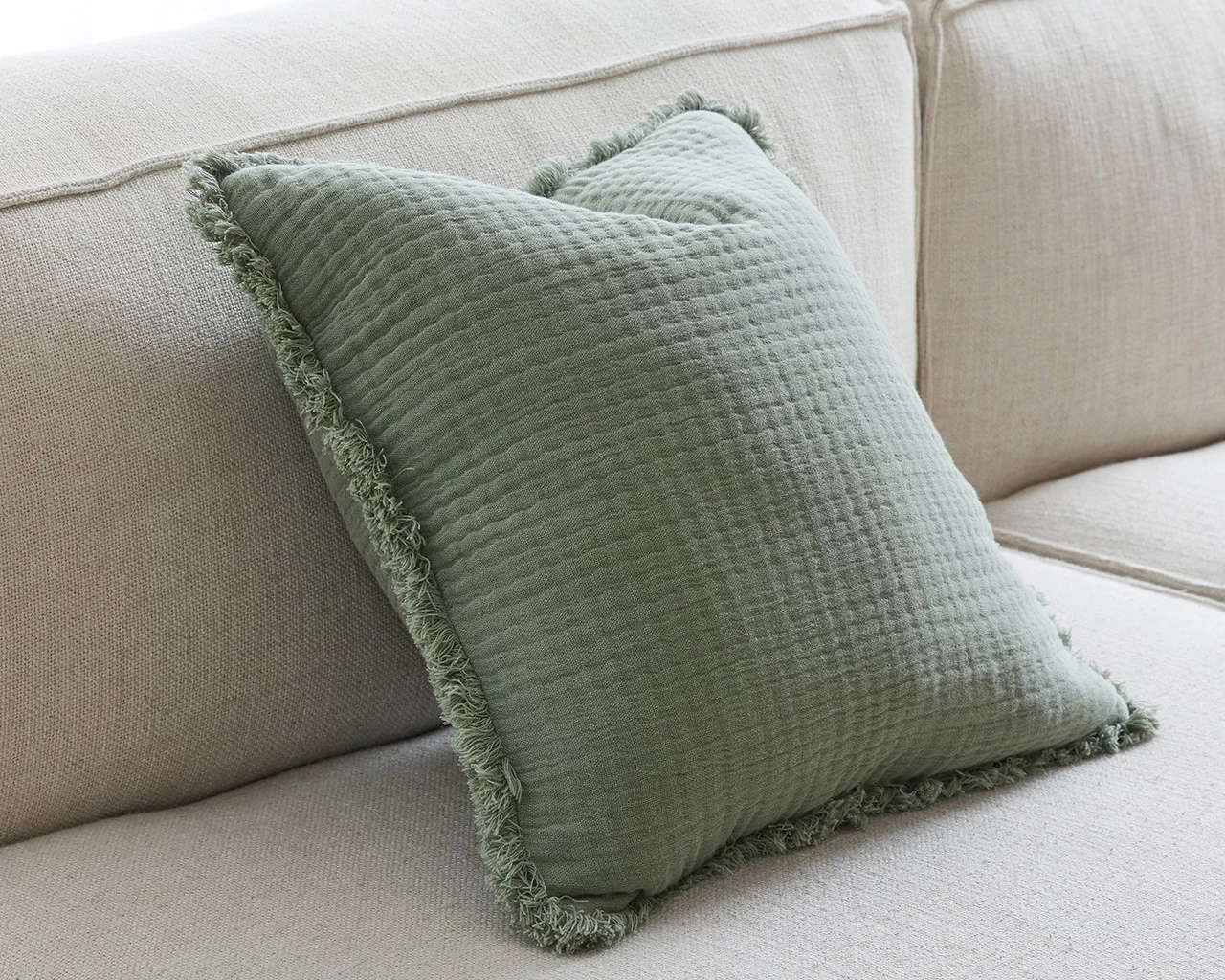 Transform your home from sparse to beautifully cosy with the Molly Fringed Cotton Throw Cushion – Khaki Green. With a lovely khaki green tone, this throw cushion adds colour to your sofa, armchair or bed. A great way to bring the shades of nature indoors, this cushion also has a fringed edge for textural interest. Made from 100% cotton, it has a soft feel and comes with a plush insert included. Ideal as a decorative throw cushion on your couch, armchair or bed, it’s the perfect comfort companion when relaxing in your home.
