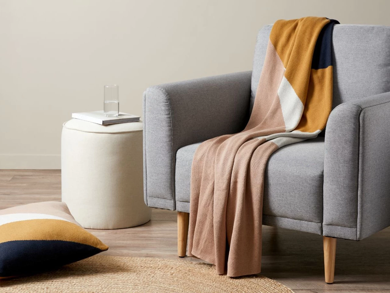 The Myla Abstract Knit Throw – Navy is made from 100% cotton with a super cosy knitted weave. The 125cm x 150cm size is ideal for styling as a throw blanket on your couch or to add a pop of colour quickly and easily to your bed. Featuring a sweeping, abstract design, this knit cotton throw rug has a wonderful, uplifting, energy that will easily translate to your bedroom or living space. The unique pairings of navy, pink and warm, neutral colours is perfectly represented in the abstract patterning and will pair with a range of interior styles. The perfect weight, this throw rug is great for snuggling up on the couch and keeping warm during misty mornings and chilly winter evenings.