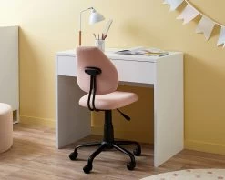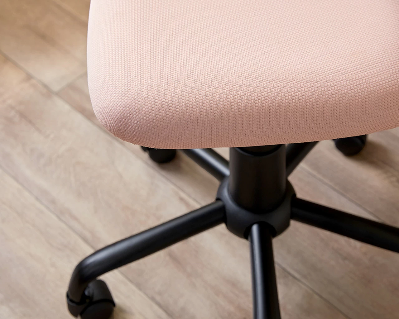 The Nancy Kids Desk Chair – Pink is a stylish small office desk chair in a pretty pink colourway. The perfect size for primary school aged children, this desk chair will look gorgeous in a child’s bedroom. Designed in house, we wanted a more colourful kids office chair to add a bit of personality and style to your child’s study space. It’s also super functional, with a soft, padded seat so your child will be comfortable as they concentrate and learn. It’s metal legs offer sturdy support and roll smoothly on the well-designed wheels. You can also easily adjust the height of the chair using the gas lift, so it can grow with your child.
