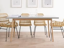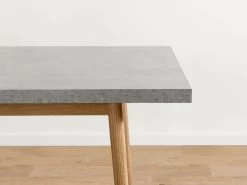 Boasting an on-trend faux concrete-look top and splayed, wooden legs, this striking combo makes this the perfect table to create a dining room to dine for.