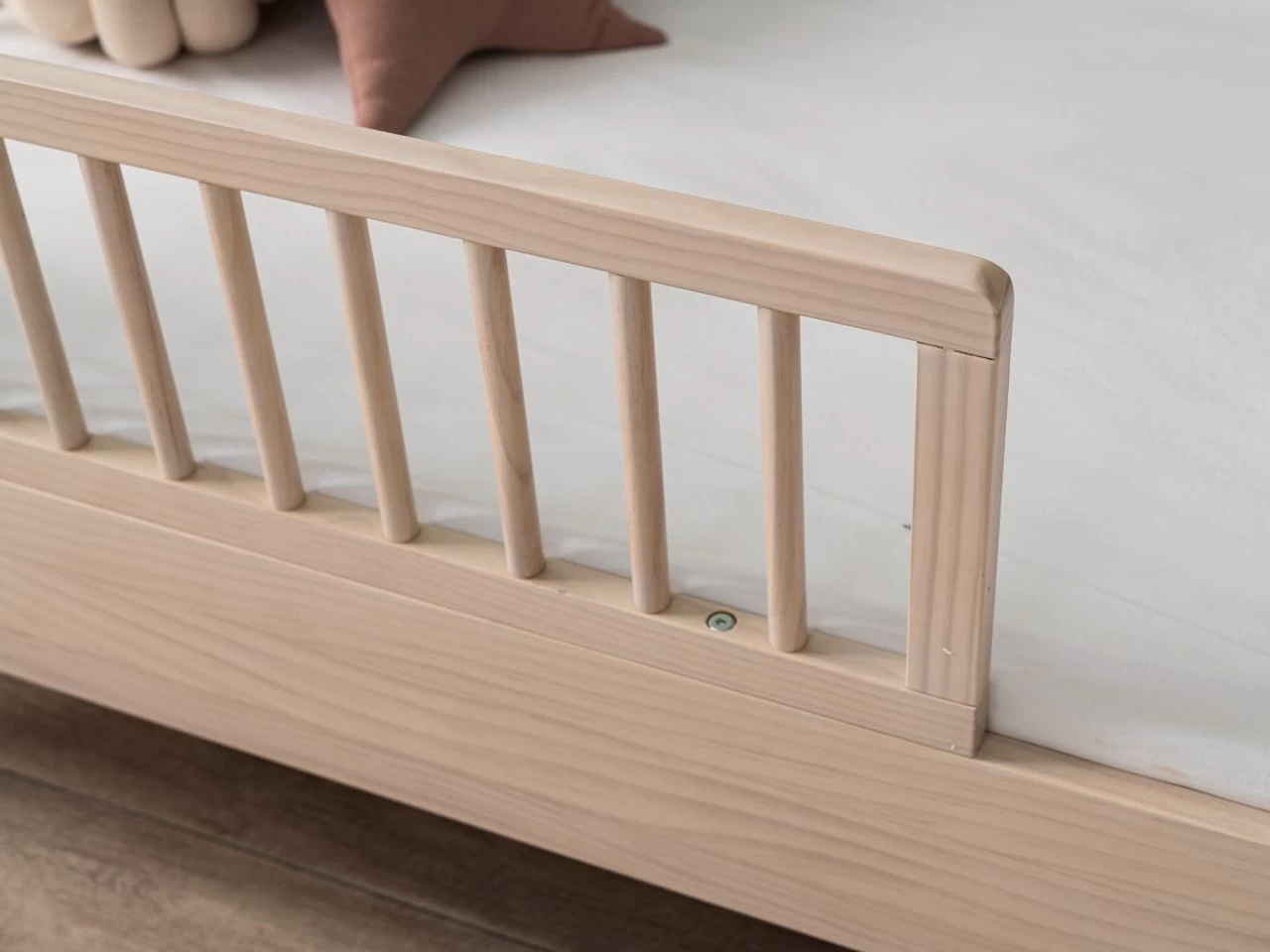 The Octavia Cot Toddler Bed Half Frame turns your Octavia Cot into a secure toddler bed with a guard rail and offers night time protection as your child sleeps. Super easy to install, replace a side of your Octavia Cot with this toddler half frame for a seamless transition and get even more use out of your child’s beloved cot. This toddler conversion panel gives parents an in-between option with the added assurance of a rail, so you know your child won’t fall out of bed in the night. Leaving an opening, toddlers will love the independence of being able to climb in and out of bed themselves. Featuring the same light and airy whitewash finish as the rest of the range, you’ll retain the look and feel of your child’s bedroom space.