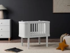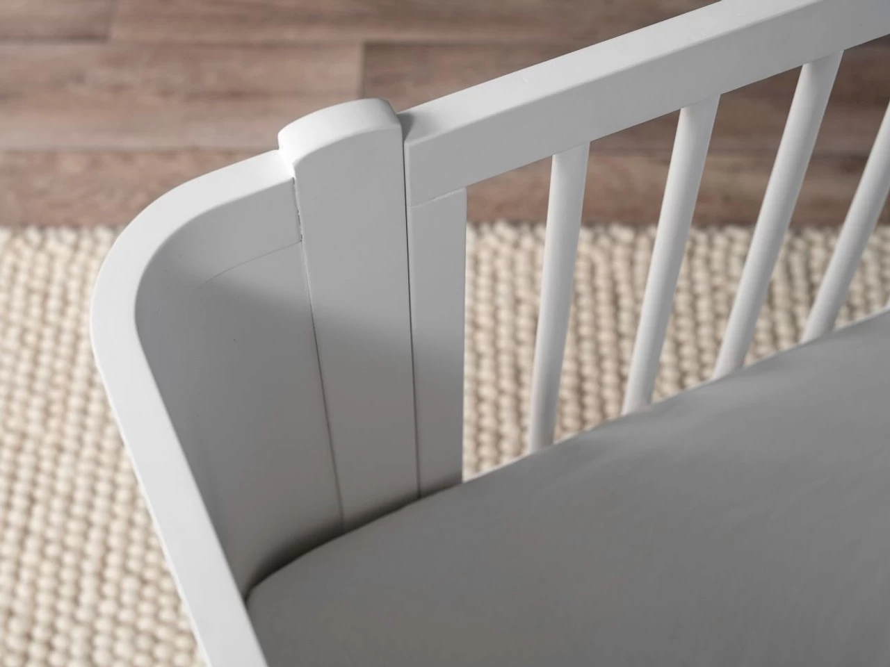The Orlando Bassinet – White creates a safe space for your baby as they come home for the first time. This whimsical, modern bassinet features curved, rounded end panels for a chic and thoughtful design. The perfect size to place beside your bed or in the same room, this bassinet keeps baby close for night-time feeds and comfort. With slatted side panels, you have good visibility and airflow to keep your baby comfortable, as well as making it easy to check on them throughout the night. We love the bright white colourway of this bassinet for a chic and neutral style that will easily suit any bedroom décor.