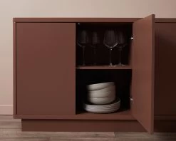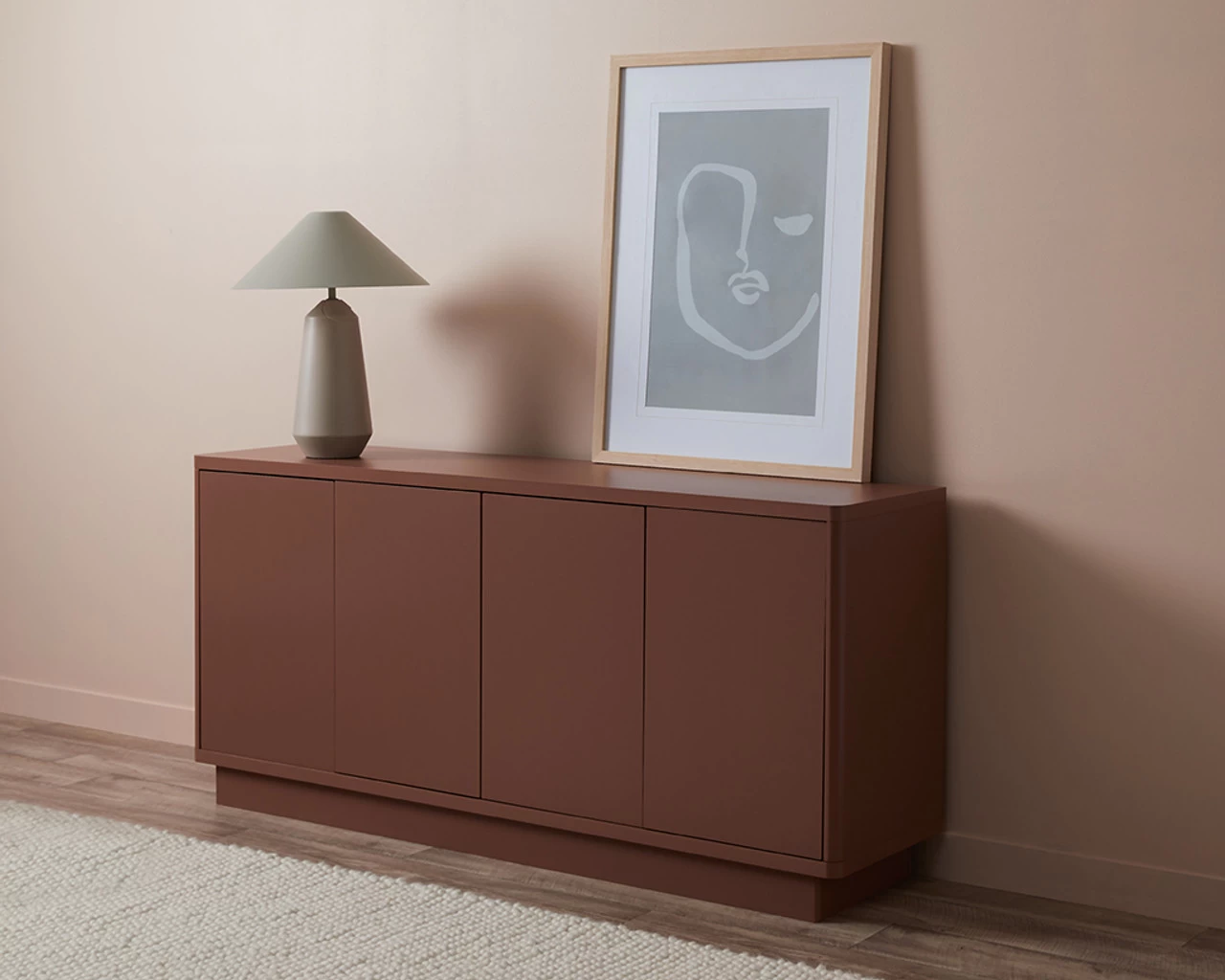The Oslo Buffet – Clay is an earthy statement sideboard with curved edges and sturdy plinth base. A great way to add new style and extra storage into your dining room, study or living room. Store everything from plates and spare vases to dog leads and your favourite board games in the four spacious cupboards. The push to open doors and internal shelves makes it easy to access and keep everything you need hidden but handy. And the flat surface is perfect to use as a buffet or workstation for making drinks or setting up a snack station for parties and entertaining. The rest of the time inspire your inner stylist with florals, prints and ceramics on top for a fresh, relaxed look.