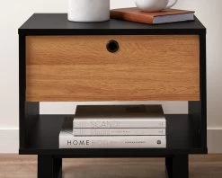 With a truly striking design, the Parker Bedside Table – Black is not for the faint hearted. If you love making a statement with your interiors, then this bedside table was crafted just for you to elevate your bedroom space to a magazine-worthy look. The high contrast of the wood-look drawer front against the deep black of the outer frame, handle and metal legs gives this unit high drama and a slight masculine feel making it suitable for any teenager’s bedroom or living spaces.