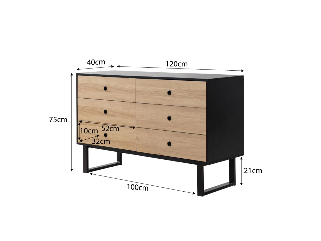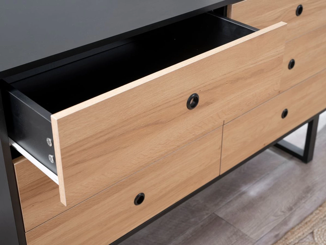 This piece of storage furniture proves there’s no need to compromise on style to tidy away clothes and clutter. This large dresser is sure to be a statement piece in your home, while still providing plenty of space to store all your clothes and other essentials. Each six sliding drawers is wonderfully spacious and easily accessible on the metal sliding rails. Use the top dresser surface to style your favourite décor such as plants, family photos and other décor pieces.
