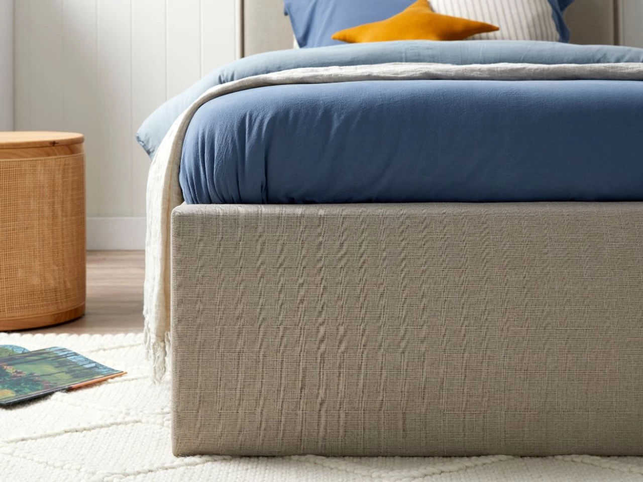 Featuring a stunning modern design, your child won’t outgrow this kid’s single bed easily. Featuring a tall, padded headboard, this adds a feature to a bedroom wall and is the perfect backing for kid’s as they lounge, read or play. The simple, neutral colour of the oatmeal fabric is chic and timeless and will match with any bedding or bedroom décor.