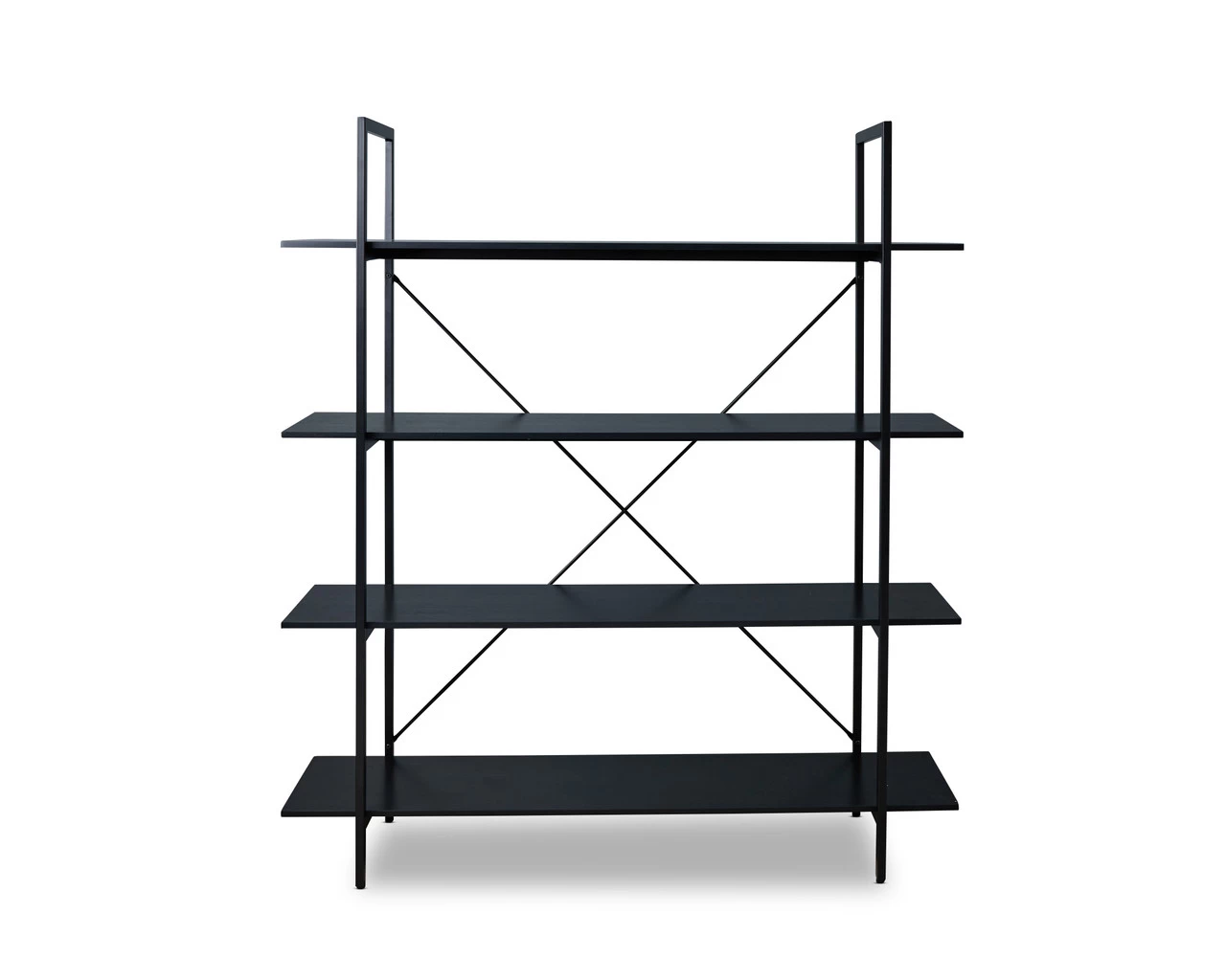 Add bold, on-trend shelving to your home with the Porto Bookcase – All Black. This stunning bookshelf has a powder coated metal frame and shelves with a textured, wood grain finish. All in an on-trend black colourway, it’s sure to make your décor and books stand out. Perfect for the living room, office, dining space and more, this black bookcase is a great way to bring intimate style to your home. Featuring a stylistic outline, this bookcase has four long, spacious shelves perfect for books, plants, vases, records and so much more.