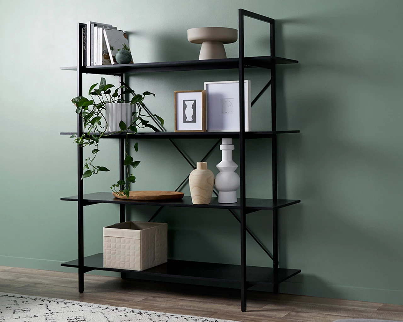 Add bold, on-trend shelving to your home with the Porto Bookcase – All Black. This stunning bookshelf has a powder coated metal frame and shelves with a textured, wood grain finish. All in an on-trend black colourway, it’s sure to make your décor and books stand out.