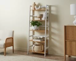 Tidy away that household clutter with the Porto Five Shelves – White.