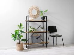 Introducing the Porto Small Bookcase – Black, with all the same design and practicality as the Porto Bookcase but with smaller proportions. This stylish bookcase offers you plenty of space for your literary and décor needs. Perfect for the home or business, this shelving unit is solid on its metal frame but modern in its appearance with three light, wood-look grained shelves. With a stunning open design, this bookcase adds dimension and space to a room for a brighter, airy home.